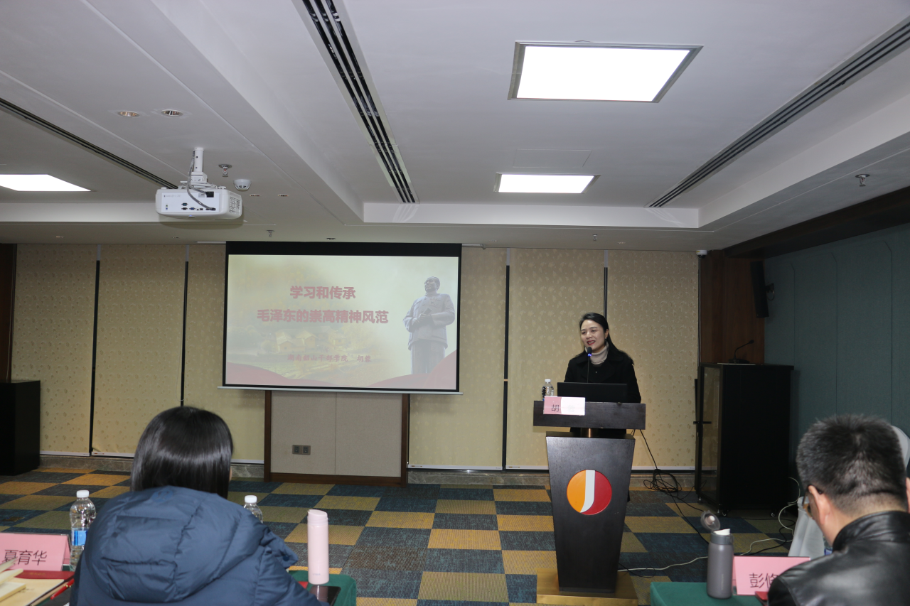 之后,湖南韶山干部学院胡蓉教授带来了一堂生动党课——《学习和传承毛泽东的崇高精神风范》。她以“廉洁无私的奉献精神”“艰苦朴素的生活作风”“积极健康的兴趣爱好”“慈严并重的亲情关系”为线索,结合多年来收集的珍贵照片,深情讲述毛泽东同志高瞻远瞩的政治远见、坚定不移的革命信念、勇于开拓的非凡魄力、炉火纯青的斗争艺术、杰出高超的领导才能、心系人民的赤子情怀、坦荡宽广的胸怀境界、艰苦奋斗的优良作风,学员们无不为之动容。