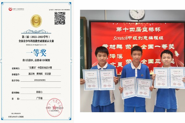 全年,我校学生获国家级奖项37项,市级以上比赛中累积获奖超过1000人次。其中,数学、物理、化学、生物、信息等五大学科竞赛共荣获一等奖4人,二等奖34人;机器人社团荣获VEX机器人世界锦标赛国际亚军,全国冠军;航模队荣获全国航空航天比赛一等奖;科技社团荣获第十四届蓝桥杯全国总决赛一等奖,全国青少年科技教育成果展示大赛一等奖,全球发明大会中国赛区决赛金奖;足球队蝉联深圳市大中小学足球比赛初中男子组冠军;“三节一周”传统活动已经成为实验特色名牌之一,也是学校坚持健全人格教育的充分体现。“读书月”活动让孩子们明事理,通古今,悦心灵,强心智;“双百”人工智能专家进校园活动开幕式在我校举行,点燃了实验学子的科技梦……