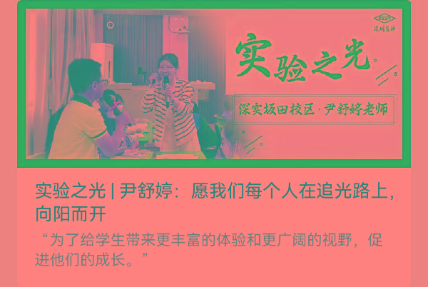 4月起,集团公众号开辟“周寄实语”专栏,已发布35期,传承实验精神,引领师德师风;9月起,开辟“集团工作概览”专栏,深化集团内学部间沟通互动,扩大学校办学辐射影响。12月,成立深圳实验教育集团新媒体中心,统筹优化集团内宣传工作力量;对宣传工作进行表彰,共奖励10个学部新媒体中心,注重数量与质量双重导向;聘请媒体记者作为顾问,促进学校宣传工作专业化、特色化、品牌化。