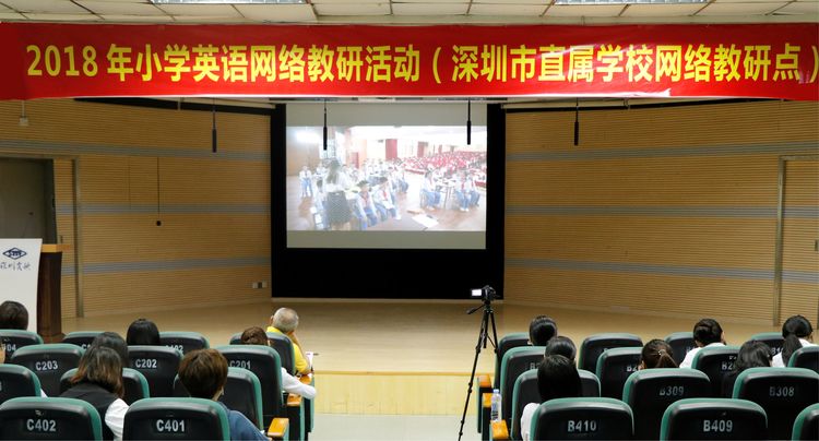 2018年10月25日上午,广东省2018年小学英语网络教研活动在东莞市松山湖中心小学举行。坂田部报告厅设为本次活动市直属学校网络教研直播观看活动点,市英语教研员郑民军老师,坂田部小学英语教师、小学部英语教师,深圳高级中学北校区、深圳小学、深圳体育学校的领导和老师们参加了本次活动。
