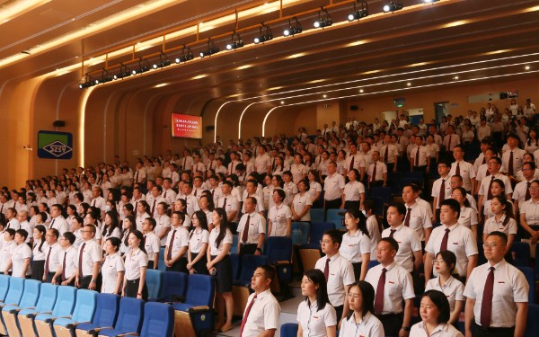 在光明部李枝潼老师的带领下,2023年新入职应届毕业生来到台上,举起右拳,进行庄严的入职宣誓——