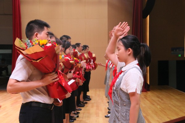 “一枝独秀不是春,百花齐放春满园。”深圳实验学校王喜峰副校长宣读集团获得年度“实验教育奖”的教职工名单,光明部梁镨月、巩忠杰老师主持颁奖仪式。“优秀园丁奖”“优秀班主任奖”“优秀团队奖”“创新实践奖”和“突出贡献奖”等五大奖项的获奖代表依次登台,集团、各部领导为他们颁发证书,少先队员为老师们献花。