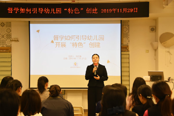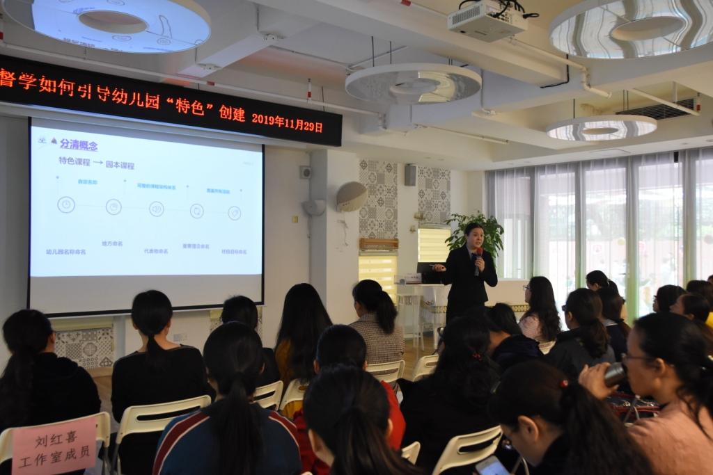2019年11月29日,实验幼教中心刘红喜主任受龙岗区教育局邀请到“祝万君督学工作室”作《督学如何引导幼儿园“特色”创建》的专题培训。刘红喜主任以实验幼教中心为案例,对办园特色、特色课程及课程特色,进行了详细的分析与解说,加深了大家对实验品牌特色的理解。