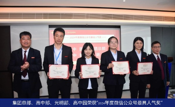 校党委副书记、主持行政工作副校长、高中部执行校长邓旭宣读了表彰决定,指出2023年12月成立新媒体中心以来,集团总部和各学部充分挖掘和弘扬我校办学理念,展现我校教育教学突出成果和广大师生良好风貌,在公众号和校园网等平台上推出了一批优秀的宣传作品,有效提升了学校的社会影响力和美誉度。随后,夏育华书记以及邓旭、王喜峰、吴立新、李笑梅、张楠、邓娟等校领导先后上台,为荣获2024年宣传工作先进集体的学部颁奖。