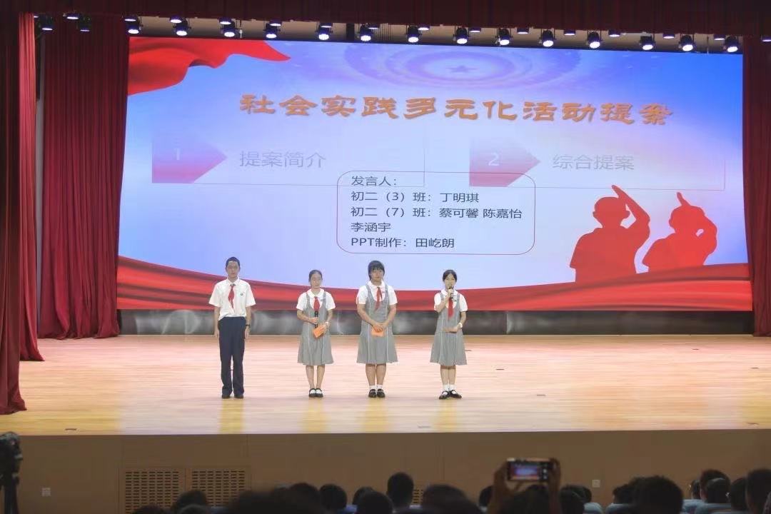 2021年6月初中部成立少工委,每年定期召开少代会,认真聆听并答复少先队员代表提案,鼓励队员关心身边人、身边事,深入思考解决现实问题的途径和方法,培养队员参政议政的意识。