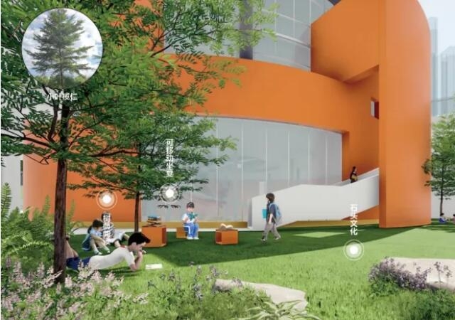 两街:这是两条居于学校两侧的绿色荫凉东街与活力共享西街。它们既是展示校园文化的长街,也是孩子们户外活动的拓展空间,更是联结家校社携手育人的共营街。其是对应深圳实验学校“双轮驱动”理念——健全人格教育与有效教学的“双轮驱动街”。
