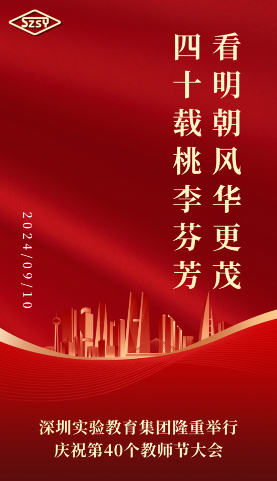 【南方都市报2024年9月14日】教师是立教之本、兴教之源。近日,深圳实验教育集团庆祝第四十个教师节大会在深圳实验学校初中部举行。此次大会以“争做‘四有’好老师 弘扬教育家精神”为主题,向全体教师致以节日祝福和崇高敬意。深圳实验教育集团各学部教师参加大会,市教育发展基金会和福田、龙岗、坪山区教育局相关领导以及校友会、爱心企业代表莅临观礼,校党委副书记、主持行政工作的副校长邓旭主持大会,校党委书记夏育华出席并讲话。