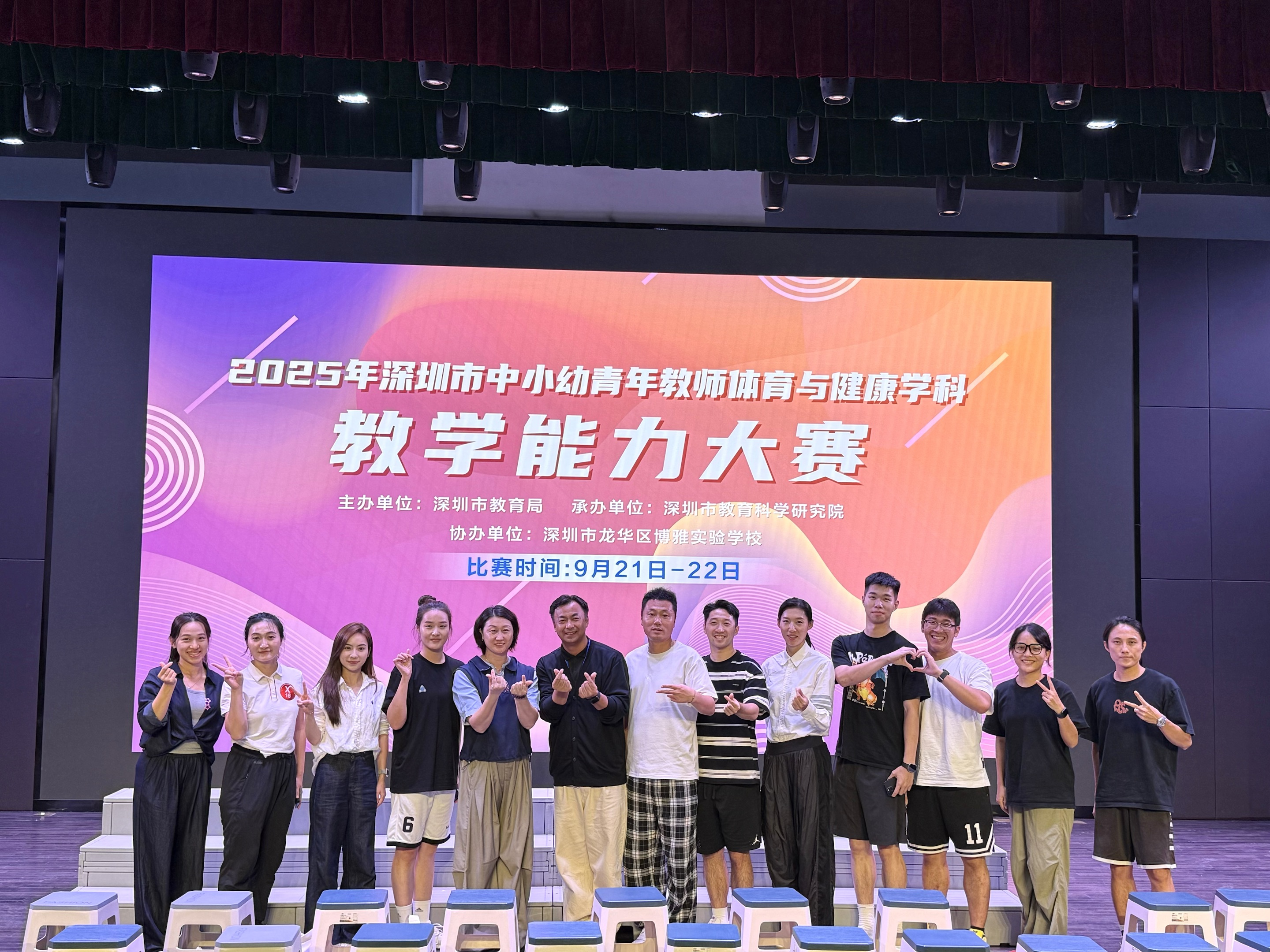 深圳体育教育圈藏龙卧虎,同行专业顶尖、赛场高手云集,竞争中满是切磋成长的契机。今年赛事分两阶段共五环节,第一阶段含 “教学设计、技能展示、体能测试、学科演讲” 等四项,前 8 名晋级第二阶段,需直面 40 名学生授课,每环节需严谨对待。