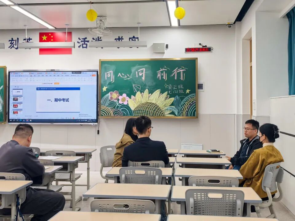 语文、数学、英语、物理、历史老师依次走进教室,与家长面对面交流学科学习重点与方法。道法、生物、地理老师精心准备了简明课件,由班主任代为讲解,内容精炼、目标清晰。每一科的努力,都是为了让孩子在新起点上走得更稳、更远。