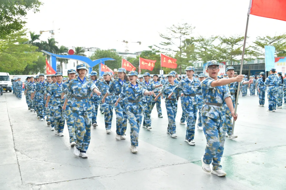 一场承载着特殊意义的开训动员仪式正以庄重的姿态拉开帷幕。同学们规整地划分为一个个方阵,身着军装的少年们身姿挺拔,双手贴于裤缝,目光平视前方,连呼吸都不自觉放轻,生怕打破这份沉静的庄重。