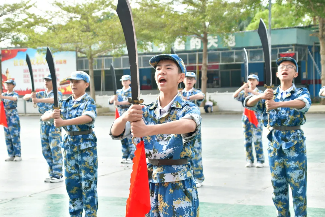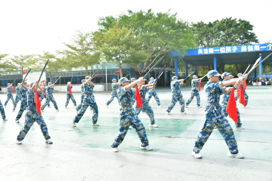 “大刀方队表演”大家整齐划一地做出劈、砍、刺等动作,刀光剑影间,每一个招式都精准有力,没有丝毫偏差。“一劈华山,二劈猛虎,三劈豺狼……” 响亮的口号声震耳欲聋,尽显少年的英气与豪情。