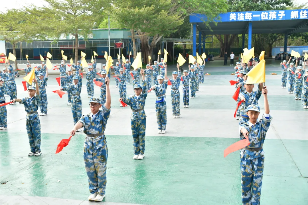 旗语方队,同学们手持鲜艳的旗帜,迈着整齐的步伐走向场地中央。“向右 —— 转!” 随着教官的口令,同学们迅速转身,旗帜在空中划出整齐的弧线。他们通过旗语传递着 “热爱祖国”“保卫和平” 的信念,
