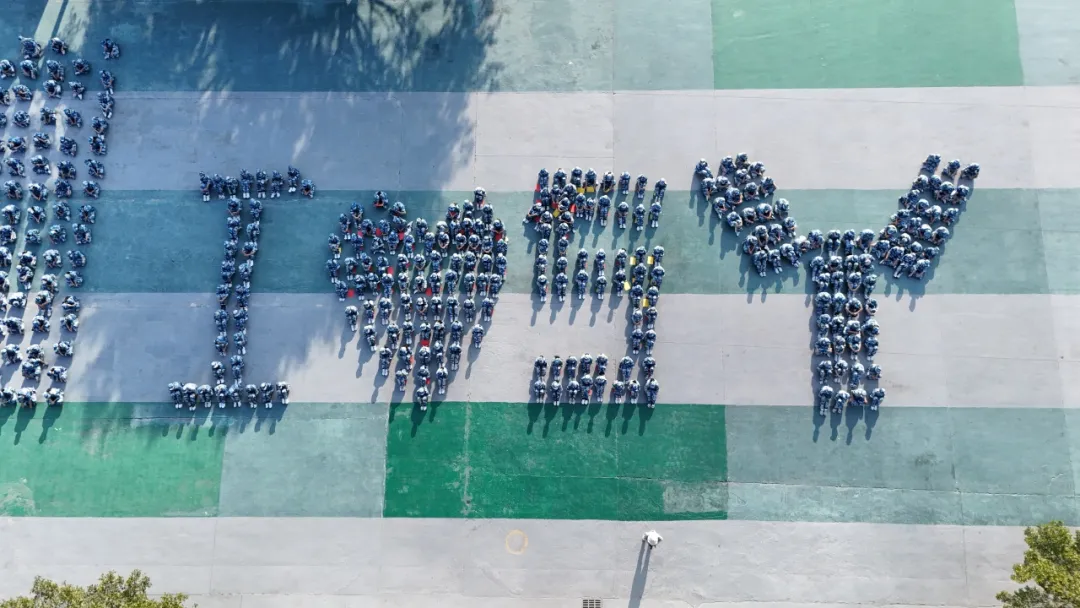 最令人动容的环节当属大国旗展示。巨大的国旗在同学们的簇拥下缓缓入场,同学们迈着坚定的步伐,神情庄重而自豪。随着队形的变换,“我爱实验” 逐渐呈现,字体整齐规范,饱含着同学们对学校的深厚情谊。