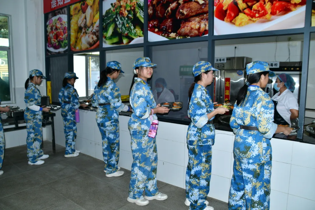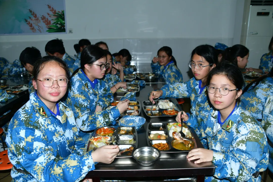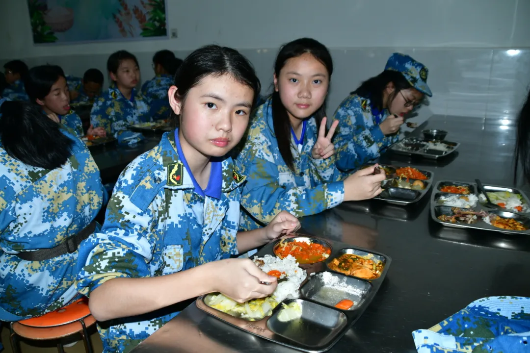 训练结束后,就餐时间成为同学们补充能量、稍作休整的温馨时刻,而整齐的秩序与自觉的担当,更成为营地餐厅里一道独特的风景线。