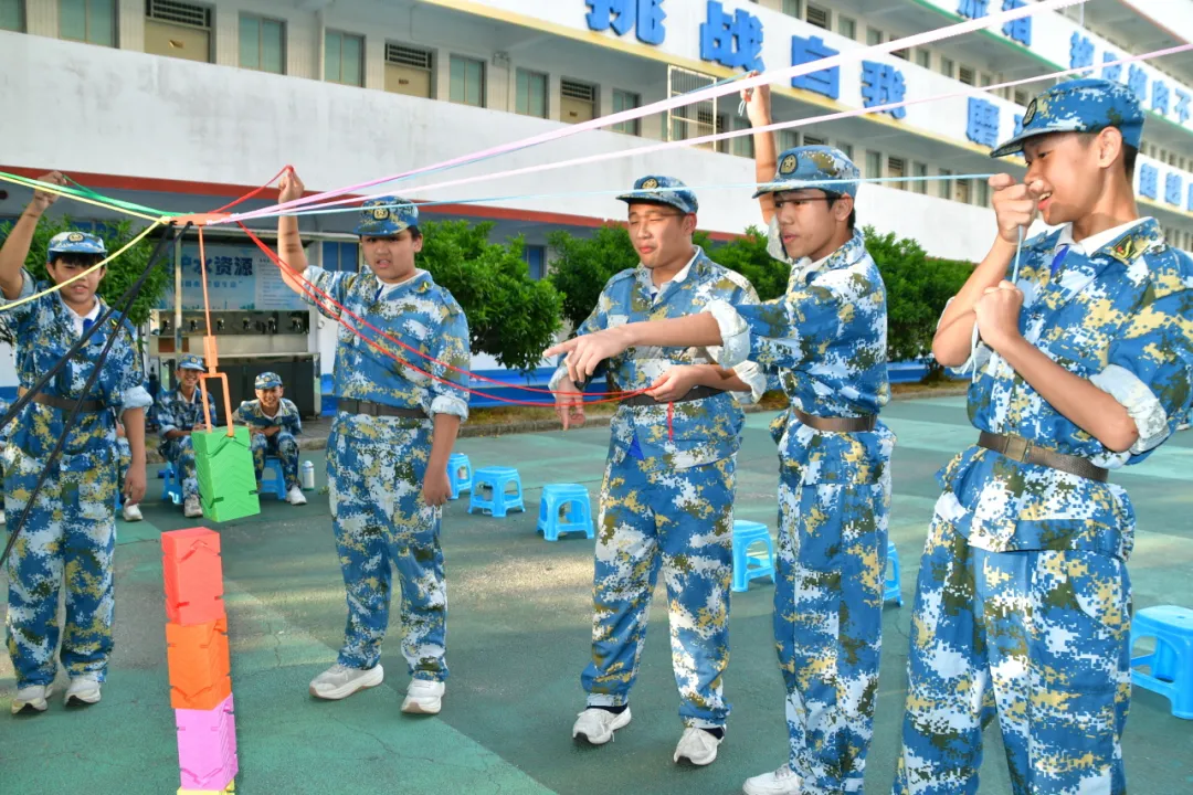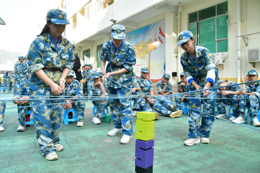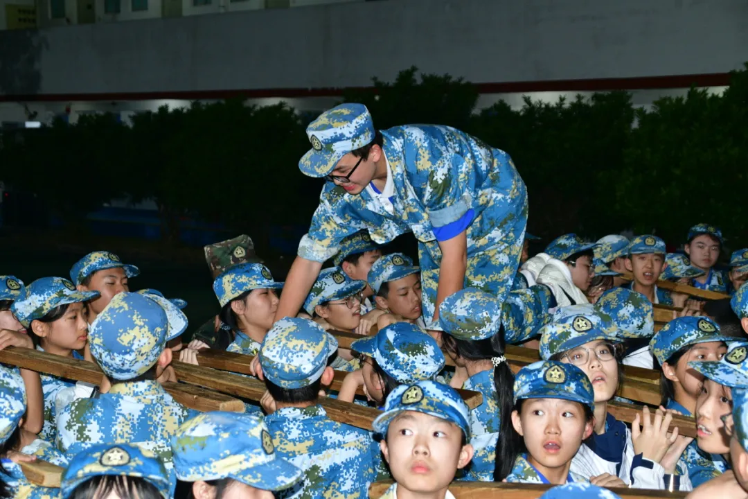 “团队浮桥” 环节堪称对协作精神的极致考验,桥上的同学则互相搀扶,共同前进。这座由青春臂膀搭建的浮桥,不仅是物理意义上的通道,更是心灵相通的纽带,承载着信任与责任,见证着少年们在磨砺中学会担当、在协作中共同成长。