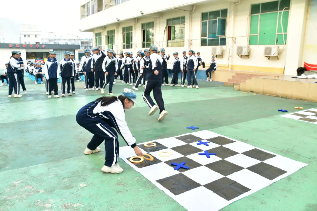 与传统五子棋棋盘不同,本次活动的道具是巨型喷绘棋盘和彩色棋子,同学们需分组协作,通过奔跑、传递棋子完成布局。各小组围在喷绘棋盘旁,时而低声商议策略,时而快速穿梭摆放棋子,场上欢呼声、呐喊声此起彼伏。