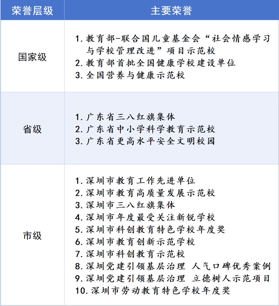 在短短四年的时间里,学校获得集体荣誉达213项,“网红午休床”等教育改革创新举措得到人民日报、新华社、学习强国、央视新闻、共青团中央、环球时报等全国性媒体的广泛报道,引起公众关注5000余万人次,学校成为了光明区基础教育领域的一匹黑马。