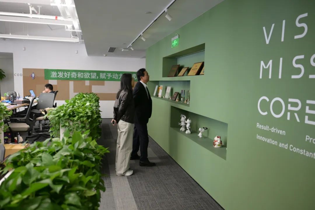 曾敏敏校友热情接待了夏育华书记一行,并分享了个人成长及创业历程,介绍了敏思跃动的业务范畴和未来发展方向。敏思跃动成立于2009年,致力于通过教育、科技及投资培养下一代年轻人改变未来的能力。公司以开发AI教育工具、软件、课程,赋能各业务板块。其服务客户地域包括中国大陆一线城市、港澳台地区及北美欧洲等国家地区,致力于成为在ESG 领域的中国领先企业。