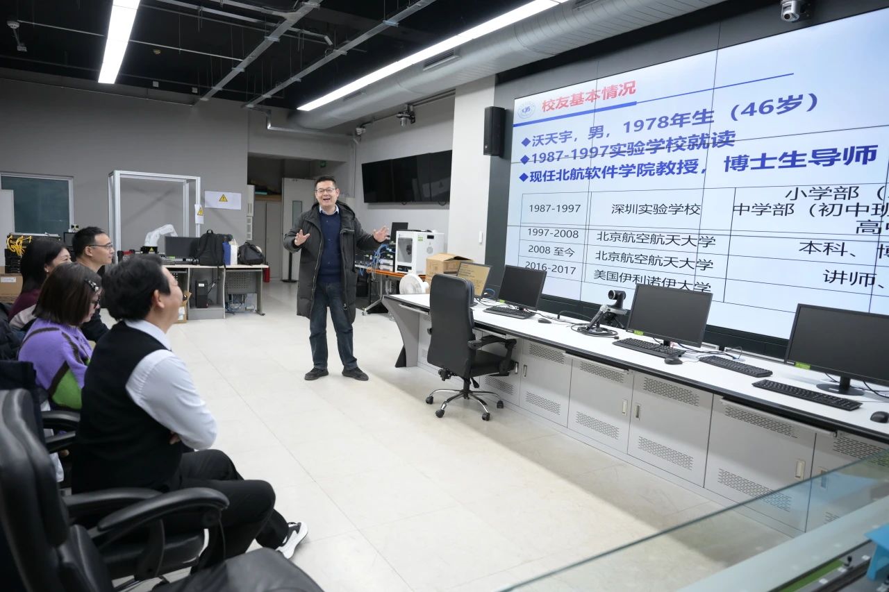 2024年12月24日,深圳实验学校党委书记夏育华带领集团党政办公室、教育教学部、校庆办公室相关人员以及高中部办公室主任助理,探访了我校优秀校友、北京航空航天大学软件学院沃天宇教授。沃教授曾是教育部部长怀进鹏院士的学生,怀部长提出的“要做有温度的教育”理念与实验学校的教育实践不谋而合,夏书记在了解沃教授在科研领域取得的成就的同时,也就素质教育发展、科技人才培养与沃教授进行了交流。