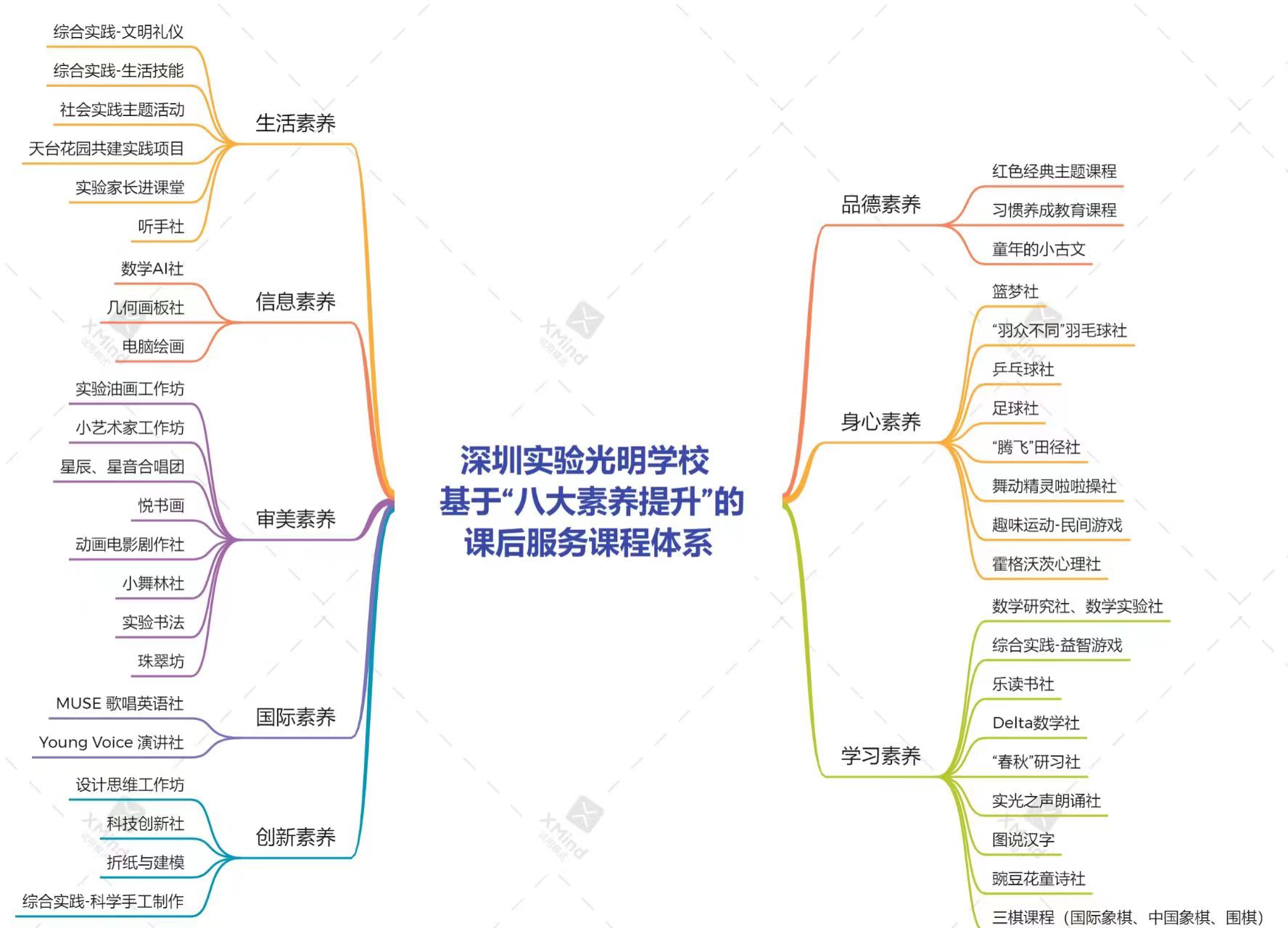 结合“双减政策”,我校坚持育人为本,遵循学生身心发展规律,围绕学生品德、身心、学习、创新、国际、审美、信息、生活八大素养,构建了丰富多彩的课后服务课程体系。2021年11月18日,我校承办深圳市光明区与百色市田阳区联合举办的基础教育经验交流活动,我校围绕“双减”背景下学校作业设计与管理,分享经验做法,发挥本校的示范作用。2022年我校被评为光明区双减示范校。