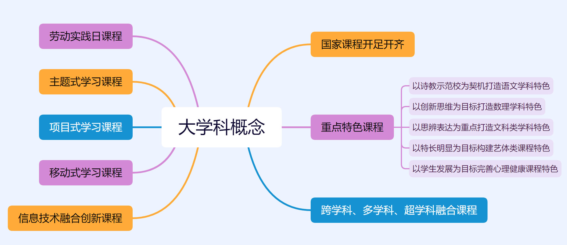 结合新课标要求对跨学科、多学科、超学科融合课程、劳动实践日课程、主题式学习课程、项目式学习课程、移动式学习课程、信息技术融合创新课程开始探索与尝试,这将逐步完善学校的大学科概念课程体系。学校信息技术创新融合课程相关的智慧化课程体系已逐渐完善。