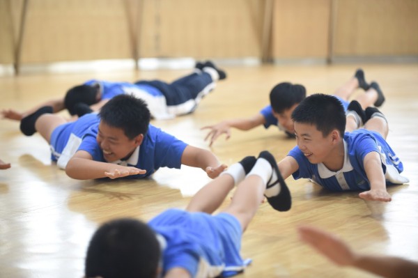 我校七年级每周开设一节形体课。在全国没有教科书的情况下,课程人自编教材进行教学,形成了独特的校本教材风格。