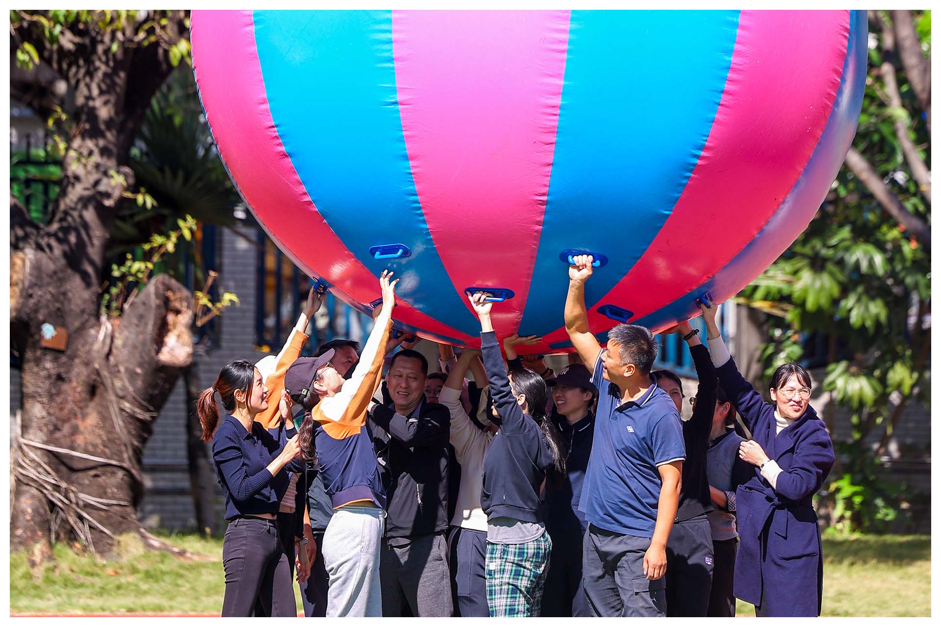 手举大气球接力赛,老师们化身风一样的使者,手捧色彩斑斓的气球,在赛道上疾驰。速度与策略的较量,默契与智慧的碰撞,每一次成功的交接,都闪耀着智慧的光芒,点燃了现场的热情。