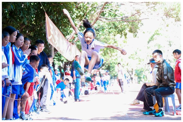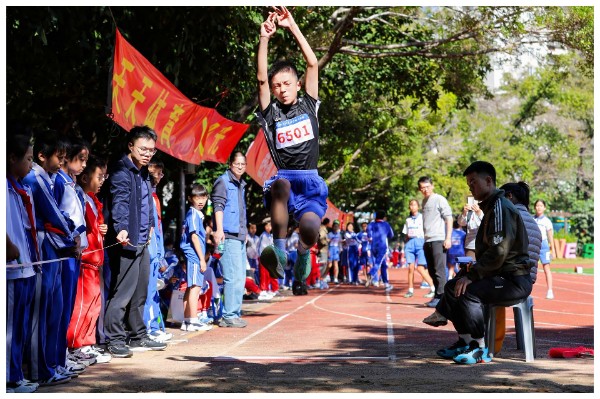 三(1)班 杨昊燃,以2.15米的优异成绩打破2013年(第29届)运动会由林炜坤创造的2.12米的男子立定跳远纪录。