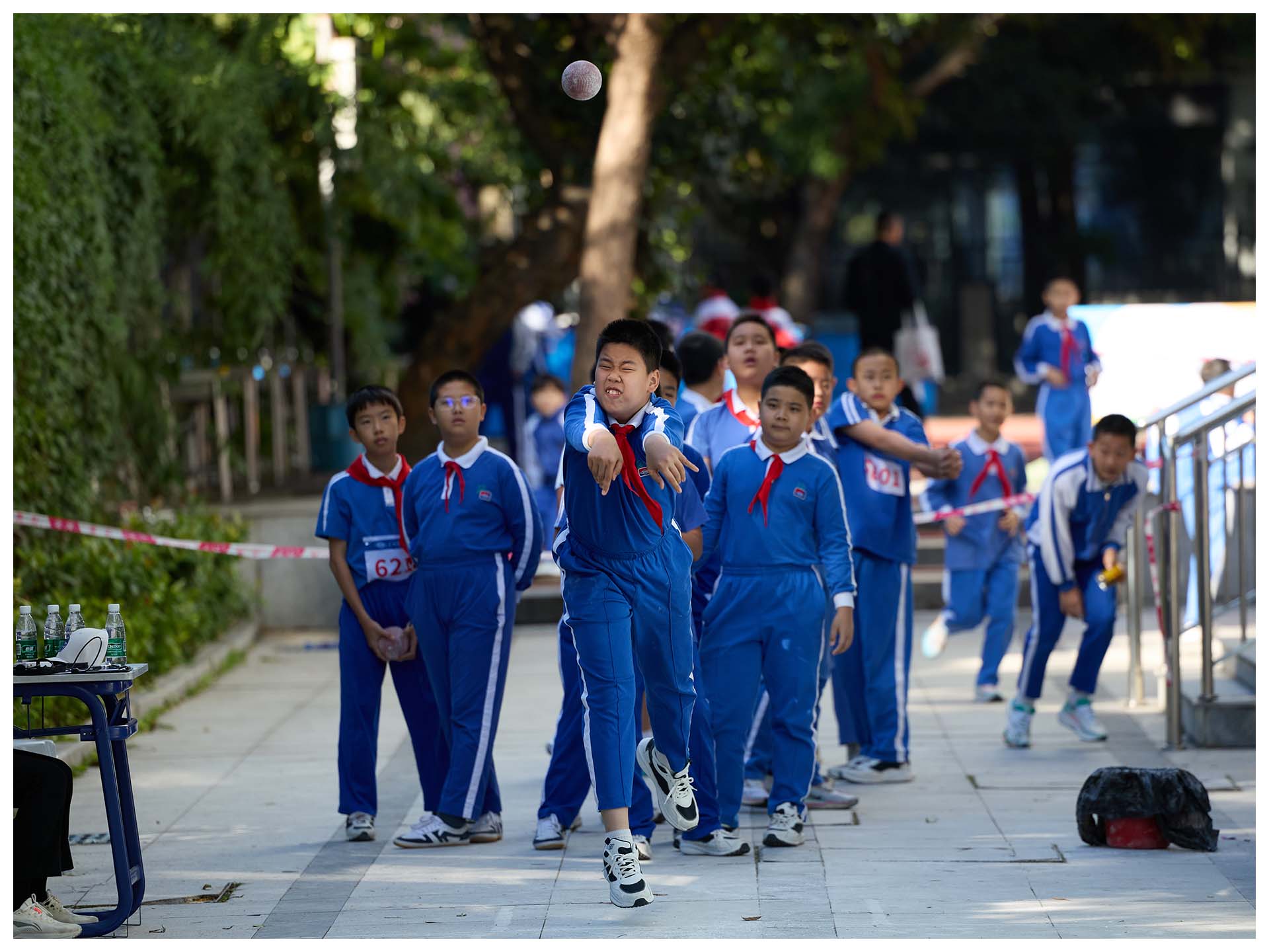 同心鼓接球,老师们围圈而立,鼓声与心跳共鸣,每一次轻盈的击球,都是团队协作的美妙旋律。笑声与欢呼交织,失误与调整并行,这一幕幕,定格成运动会中最温馨的画面。