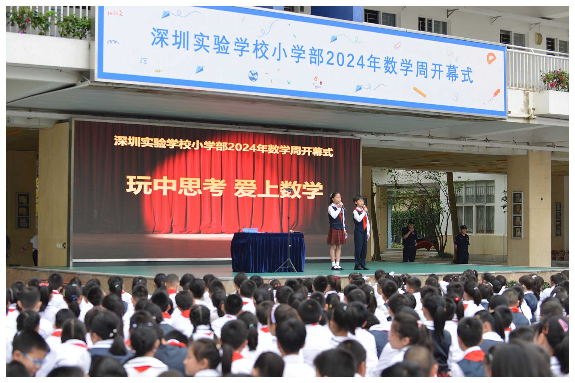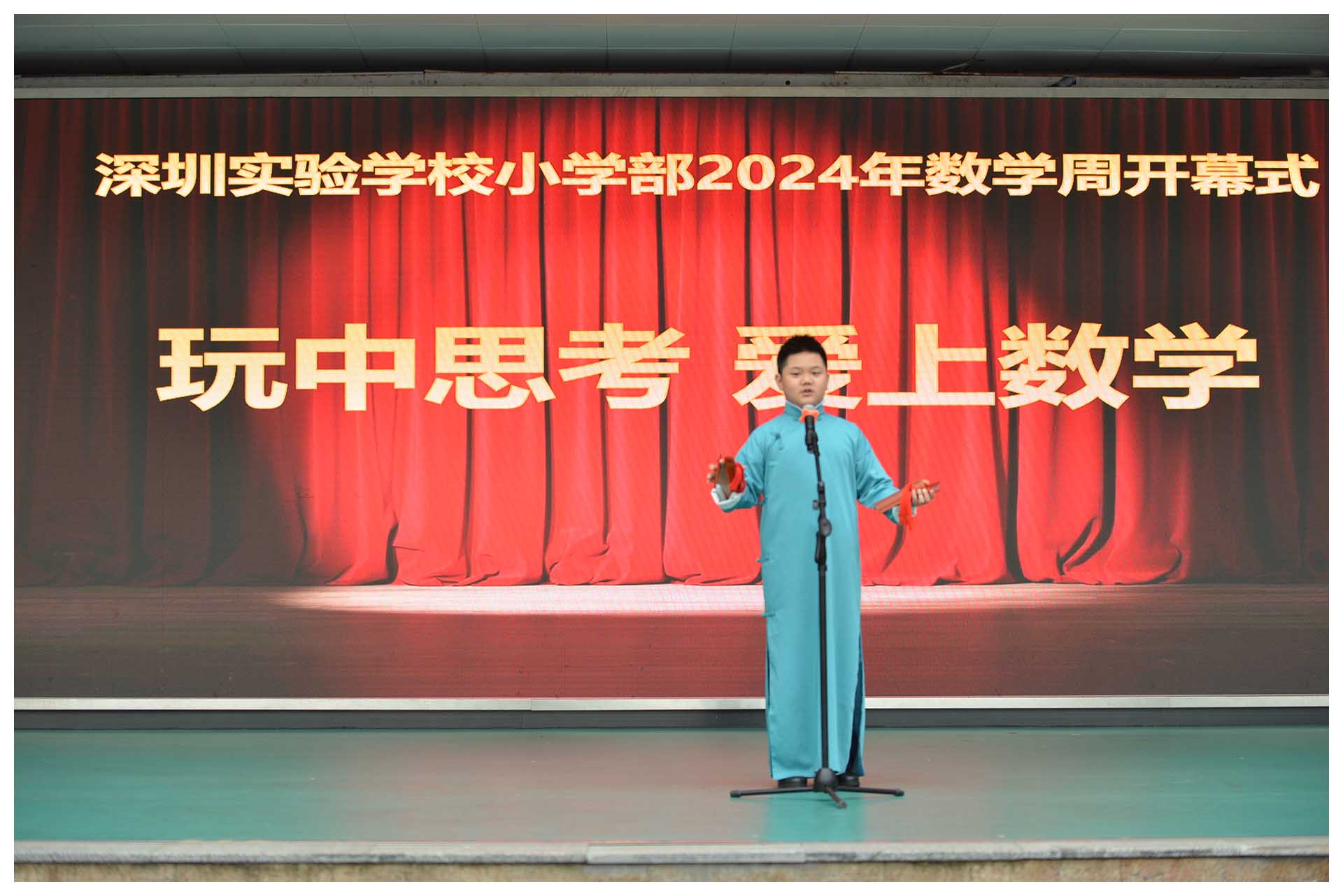 本届数学周以“玩中思考、爱上数学”为主题,伴随着国歌奏响揭开了开幕式的帷幕。“说数学,真神奇,千变万化令人迷,找规律,寻真理,智慧之光照心底。”四年级同学妙趣横生的快板表演用简明轻快的句子轻松展示了数学的魅力,活灵活现地揭示了数学知识,又以有声有色的互动激发了台下观众们的数学兴趣。