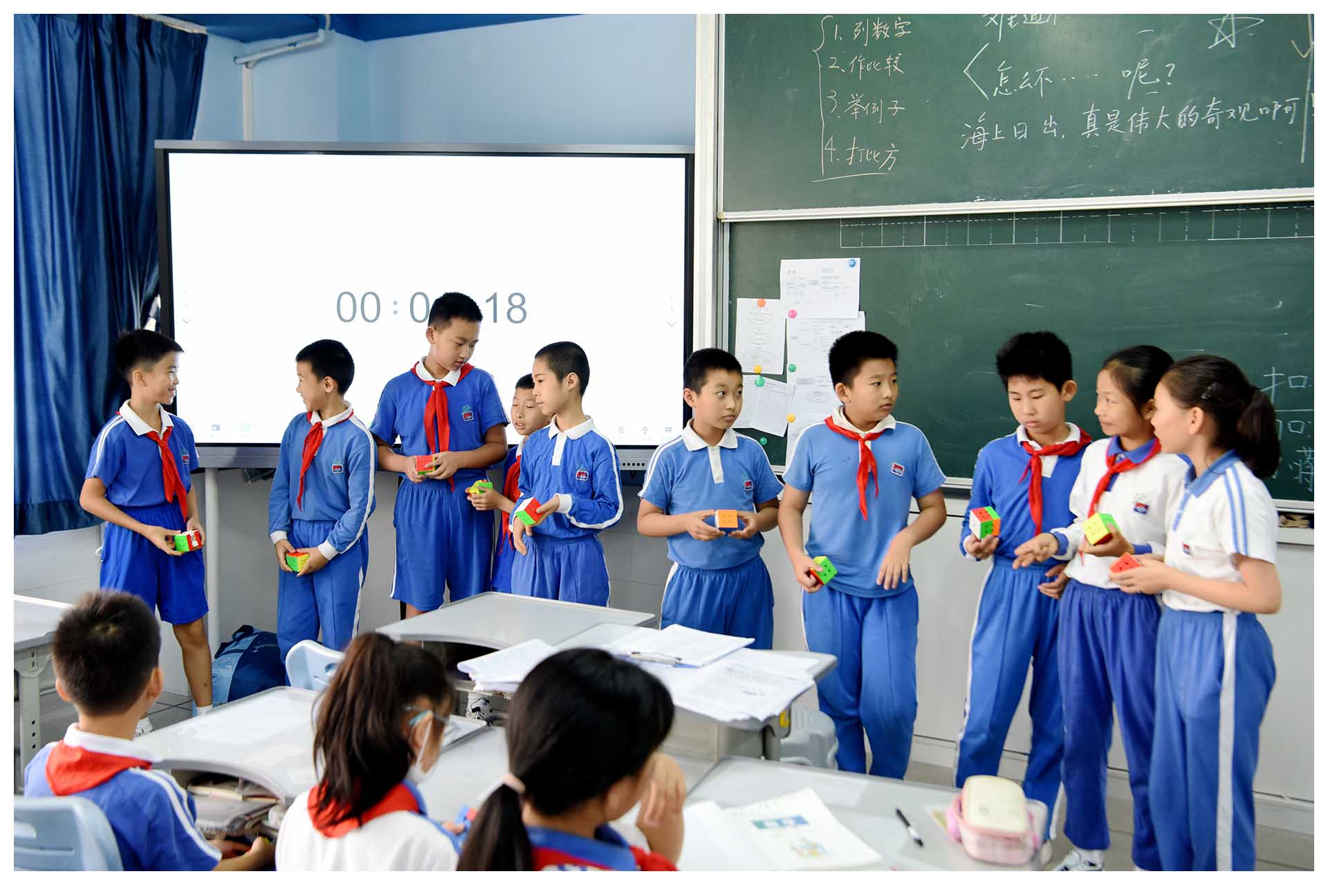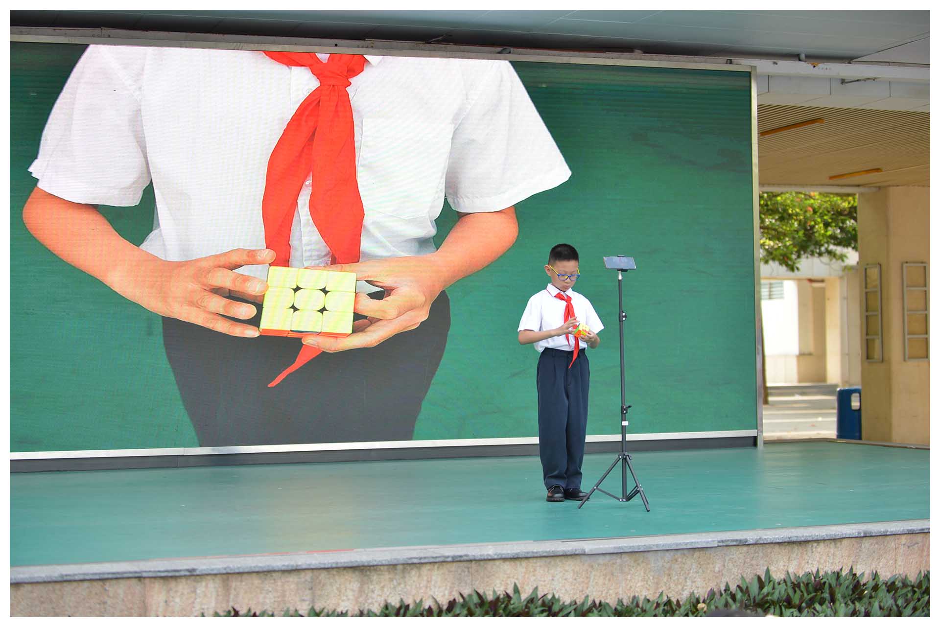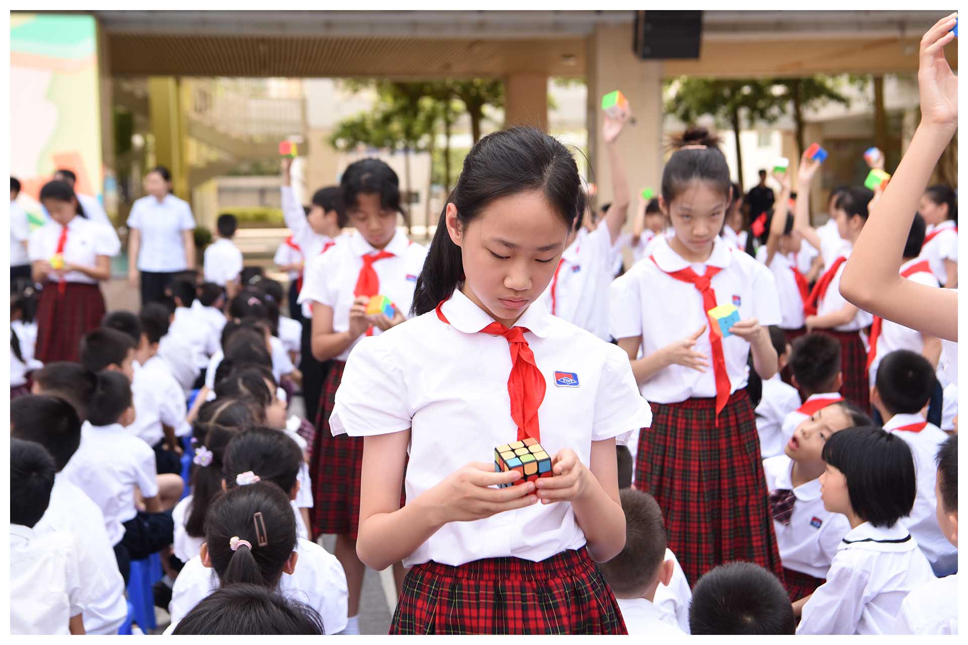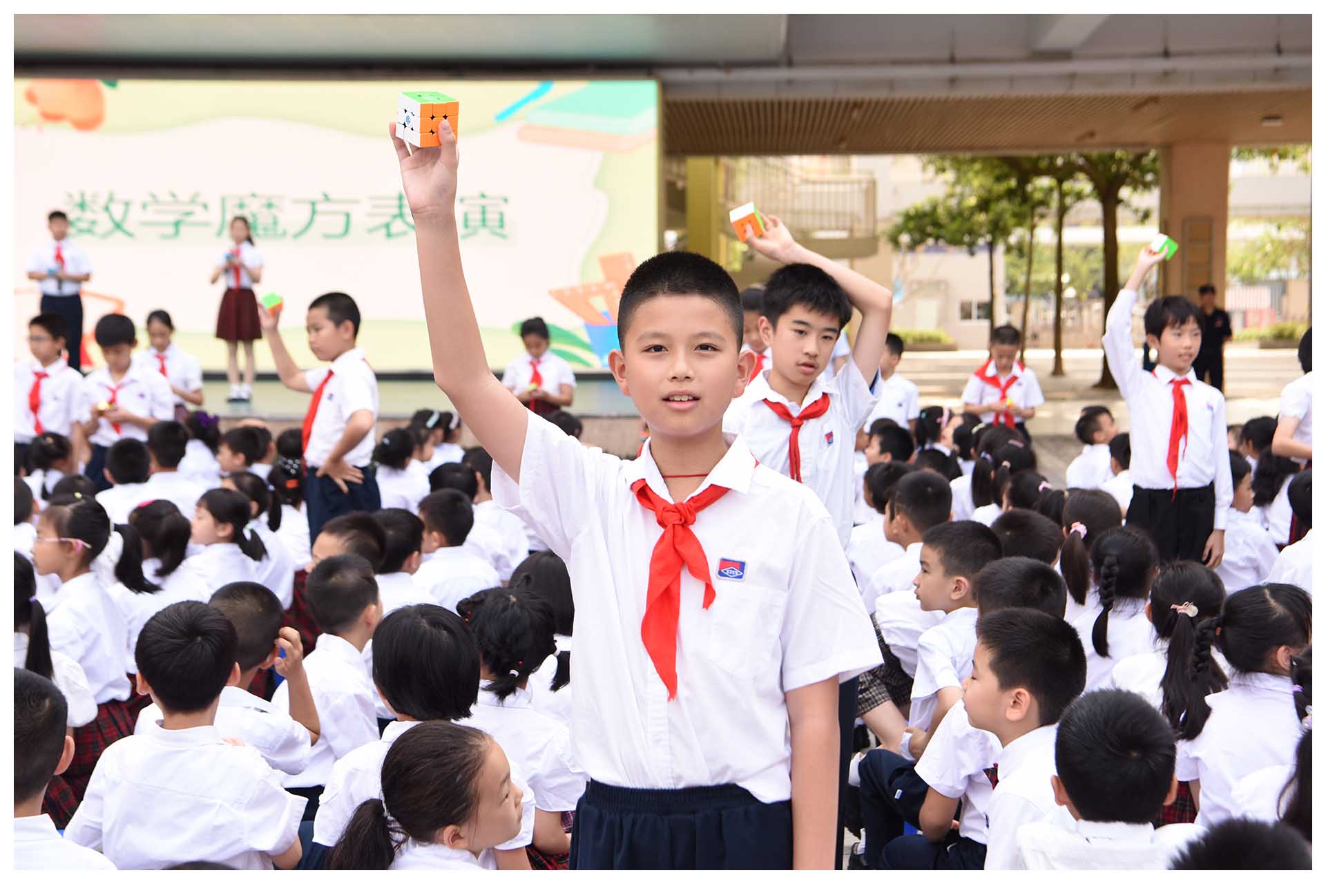 在四至六年级的魔方高手精彩的魔方复原表演中,数学周圆满结束。