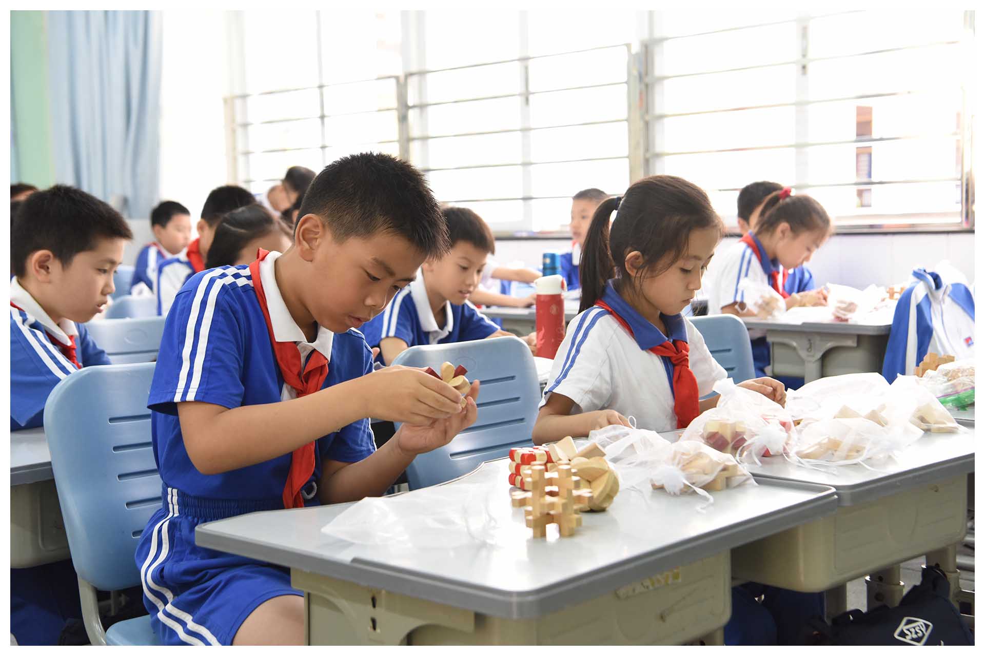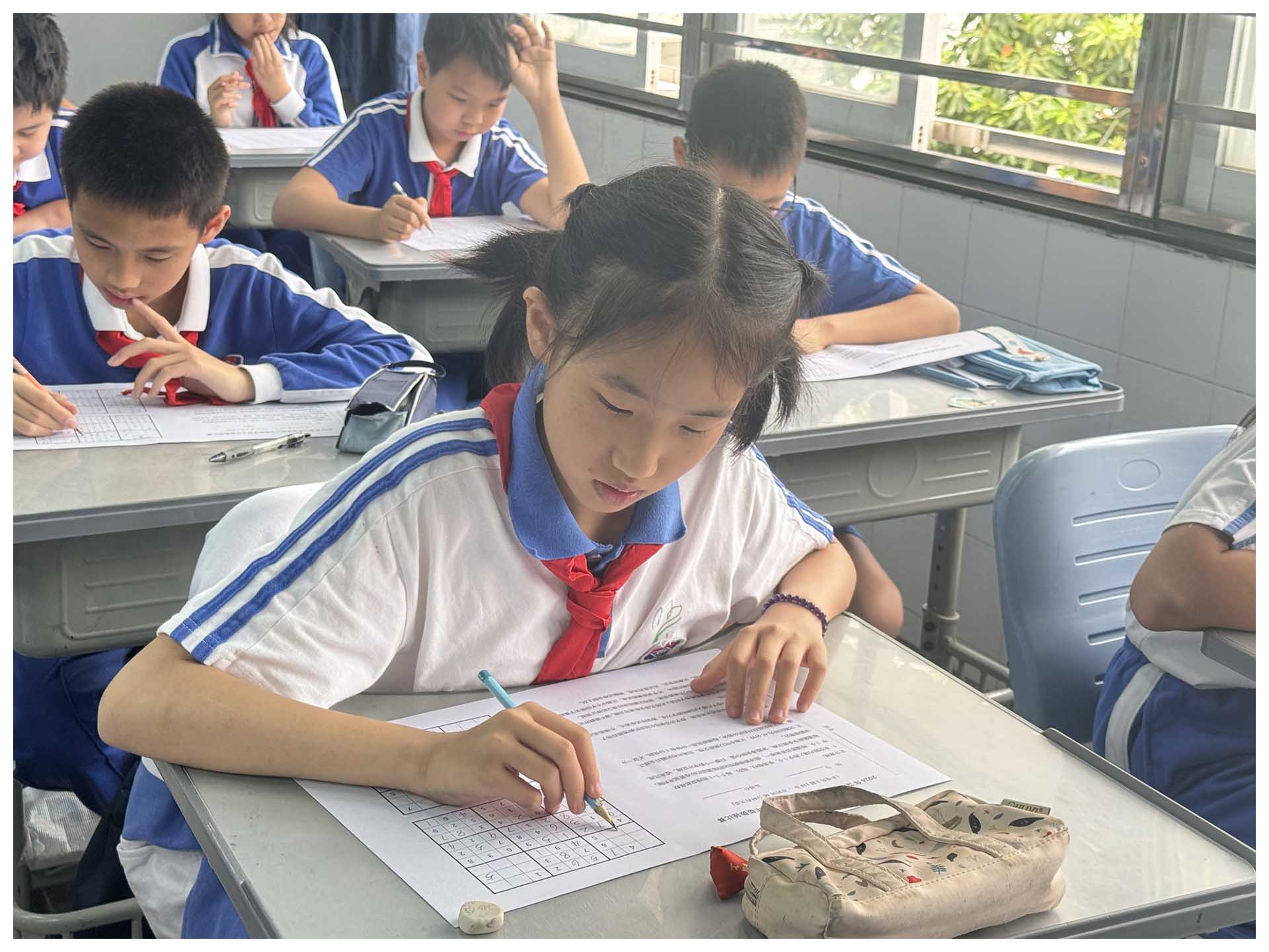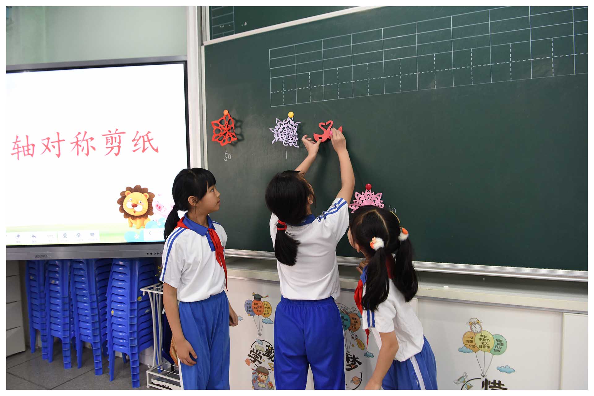 一年级的小朋友们驾驶着小小红车,穿梭在数字王国里,在趣味十足的谜题中增强了空间观念;二年级的同学们则化身小小侦探,在华容道迷宫中烧脑比拼,发展了逻辑推理能力;三年级的孩子们拿起剪刀,在纸上尽情挥洒创意,每副对称剪纸作品中都蕴含着无限的想象力和创造力。