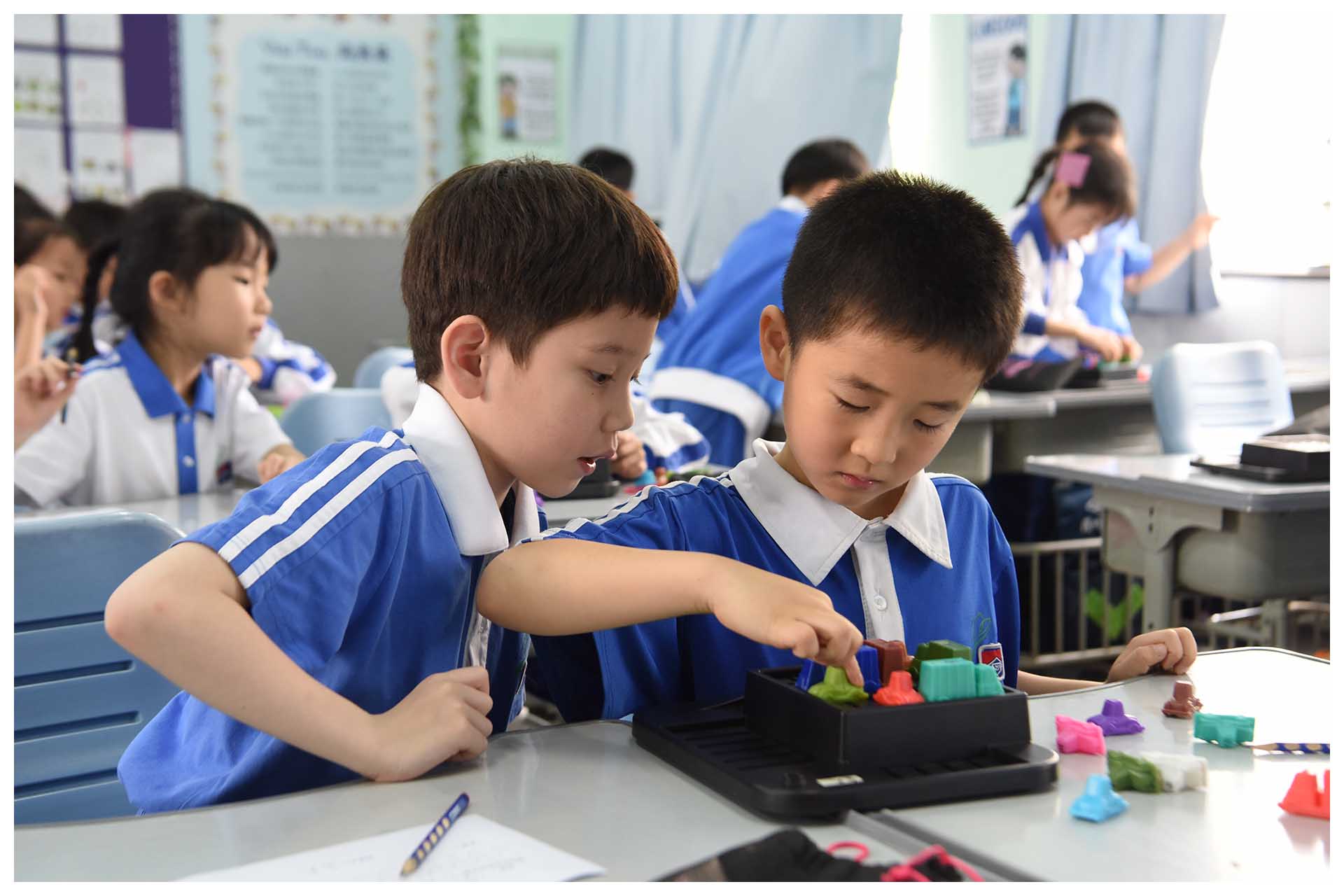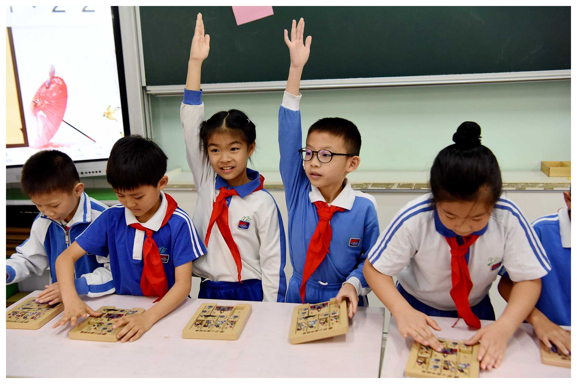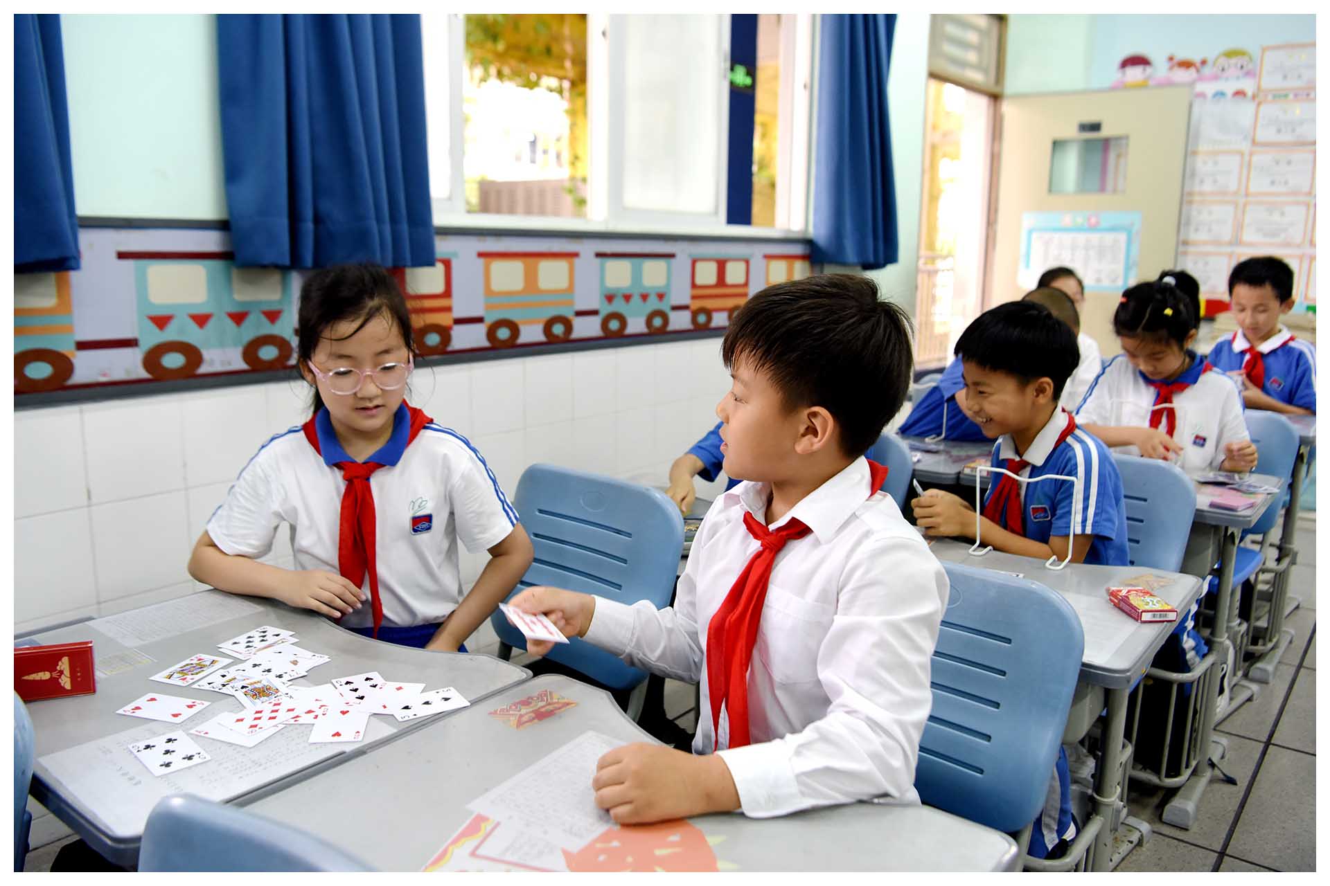 一、二、三年级的小朋友们沉浸在趣味十足的扑克牌游戏中,探索数学的奥秘,锻炼逻辑思维能力和计算能力,在游戏中收获知识和快乐。