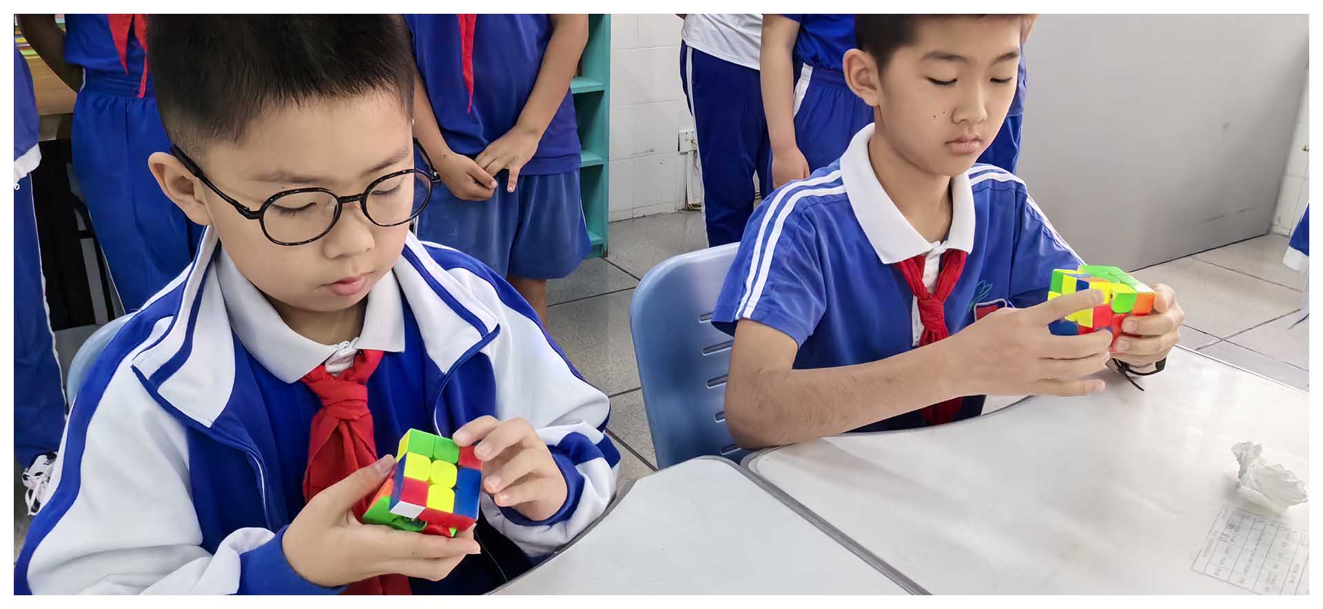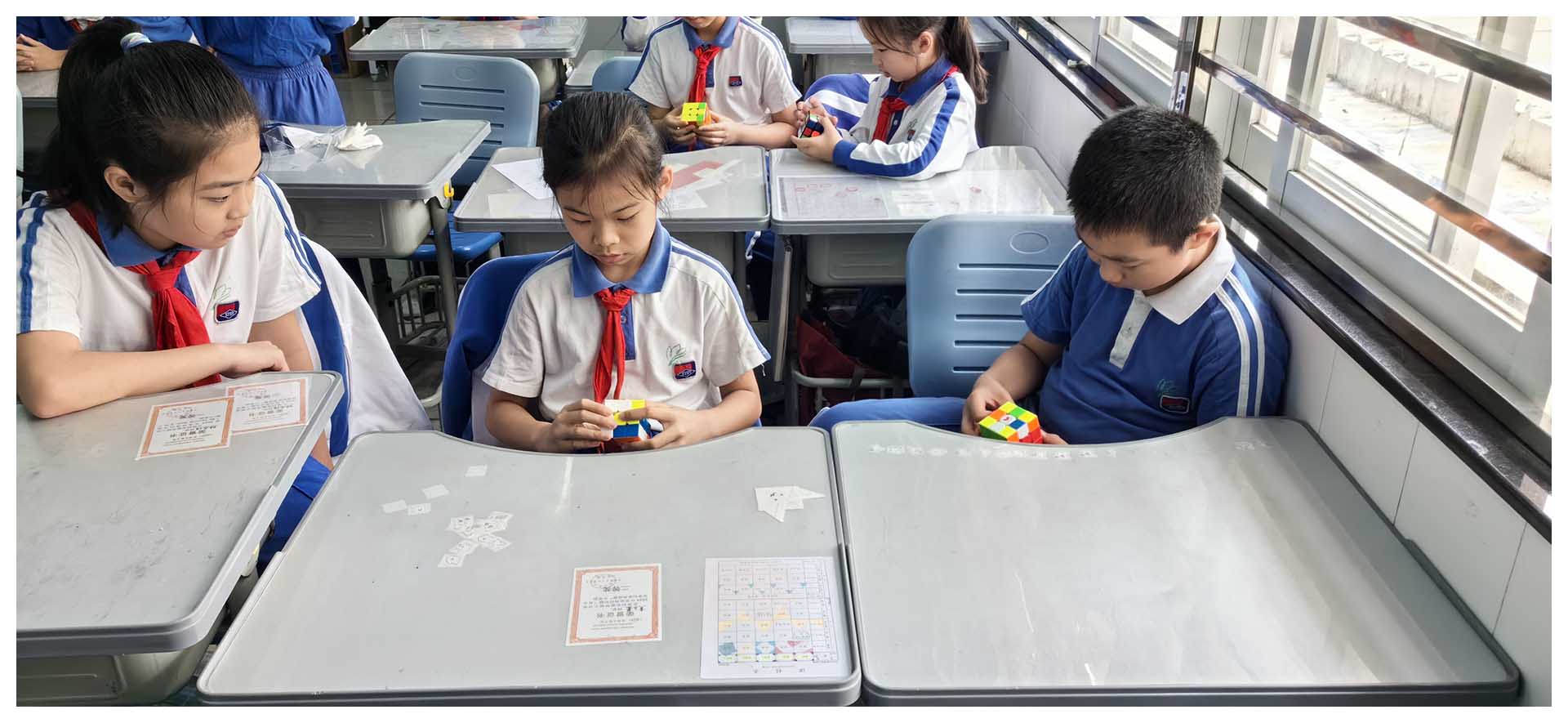 四年级的小小魔方大师,用敏捷的手指将离散的色块重新组合,发展空间观念、强化逻辑推理,在每一次扭转中碰撞出智慧的火花;五年级的数独挑战也不简单,孩子们则沉浸在数字迷宫中,运用逻辑推理和缜密思维层层解谜,在数字的海洋中尽情遨游;六年级的学生则撸起袖子、拿起工具进行比例模型制作,通过精确的测量、严谨的计算、精美的搭建,将数学知识应用于实践,展现了他们对数学的理解和应用能力。