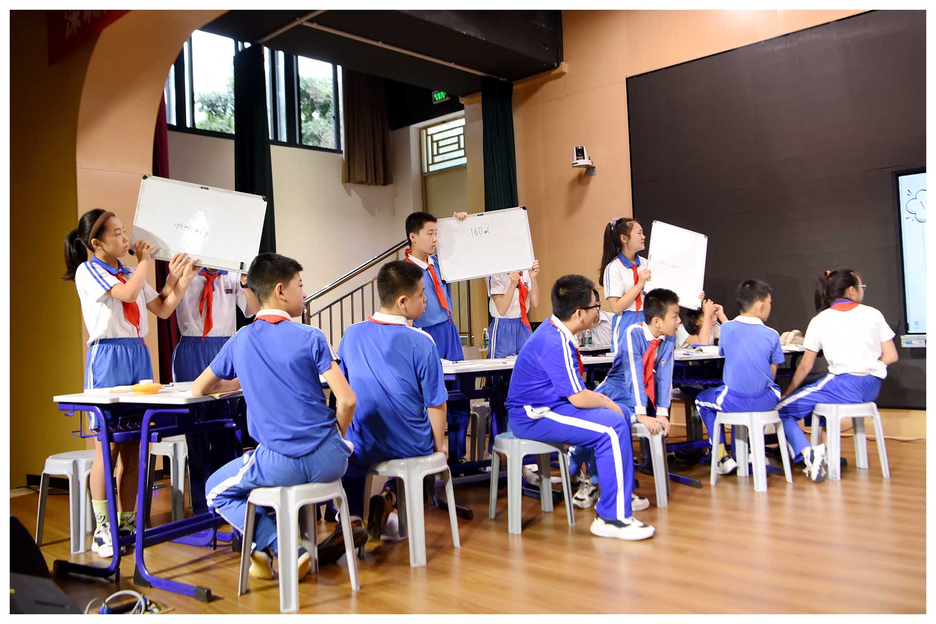 最惊心动魄的活动莫过于四、五、六年级联合举办的“趣味数学现场大赛”啦!比赛采用班级PK的方式,共分为抢答题、必答题和风险题四类题型。数学现场大赛不仅考验数学知识,也增进了班级之间的友谊。