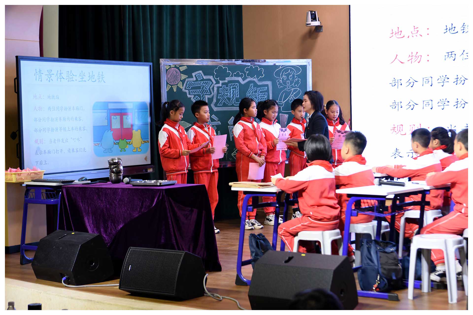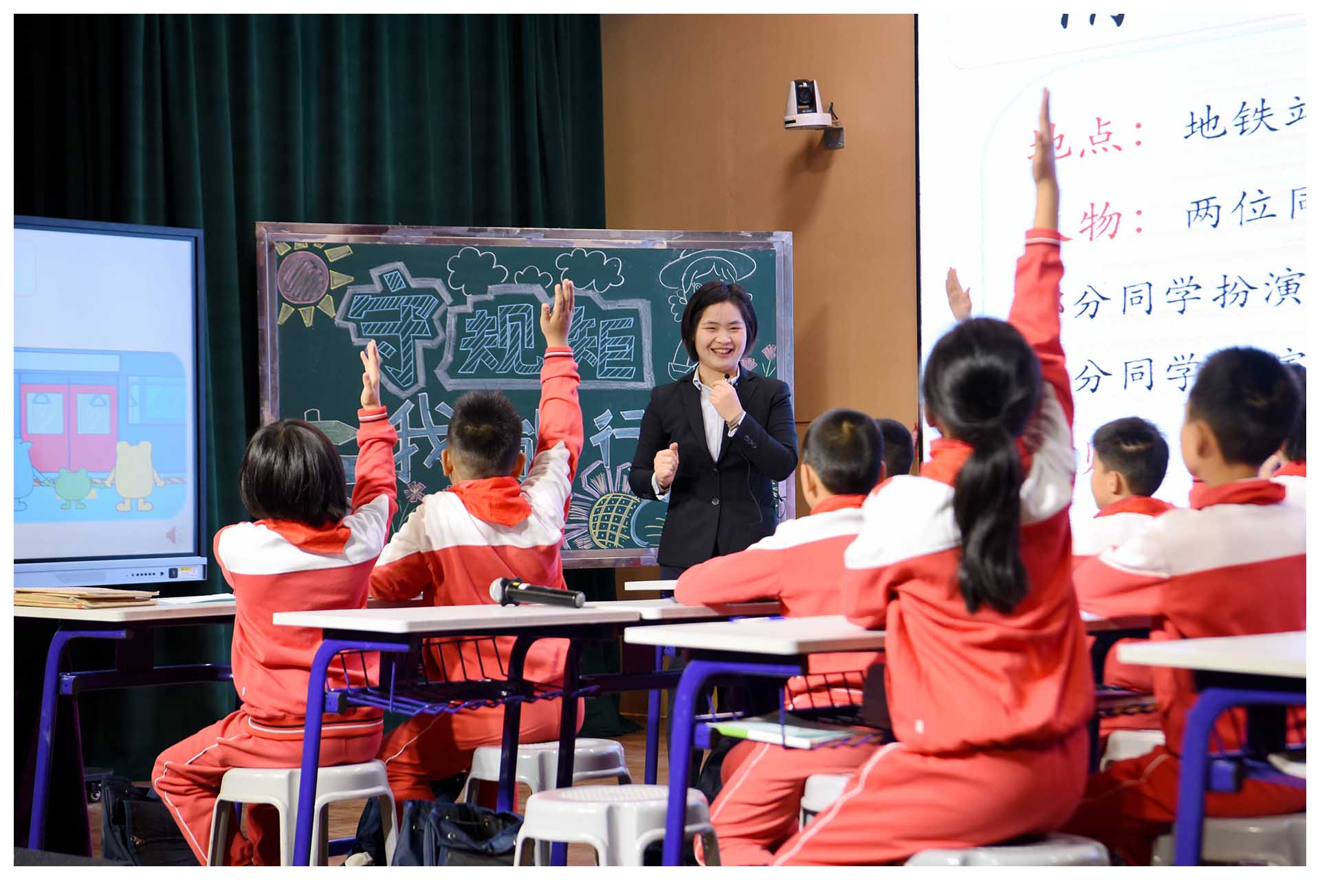 开幕式结束后,小学部的青年班主任刘洁雅老师给大家带来了一堂精彩的主题班会课——《守规矩 我能行》。小学部执行校长吴立新、学生处主任杜益明等行政领导陪同观看。