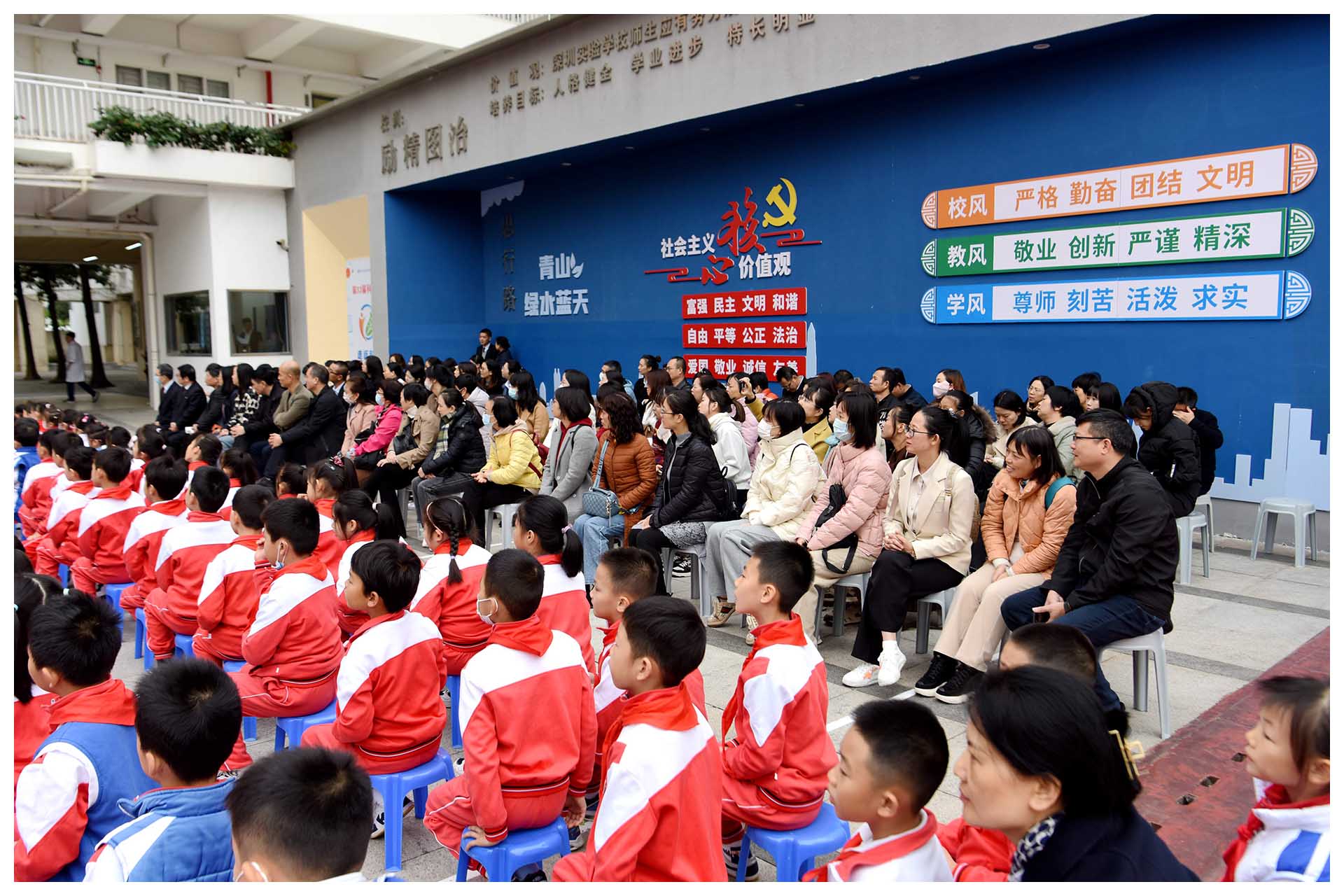 为落实深汕帮扶大战略,加强校际交流与学习,促进班主任队伍建设和学生教育管理水平的提升,12月19日上午,汕头市南澳县教育局戴雪君局长、南澳后宅镇中心小学黄耀南书记(兼校长)率领五十多名领导和班主任一行来到我小学部参观访问。