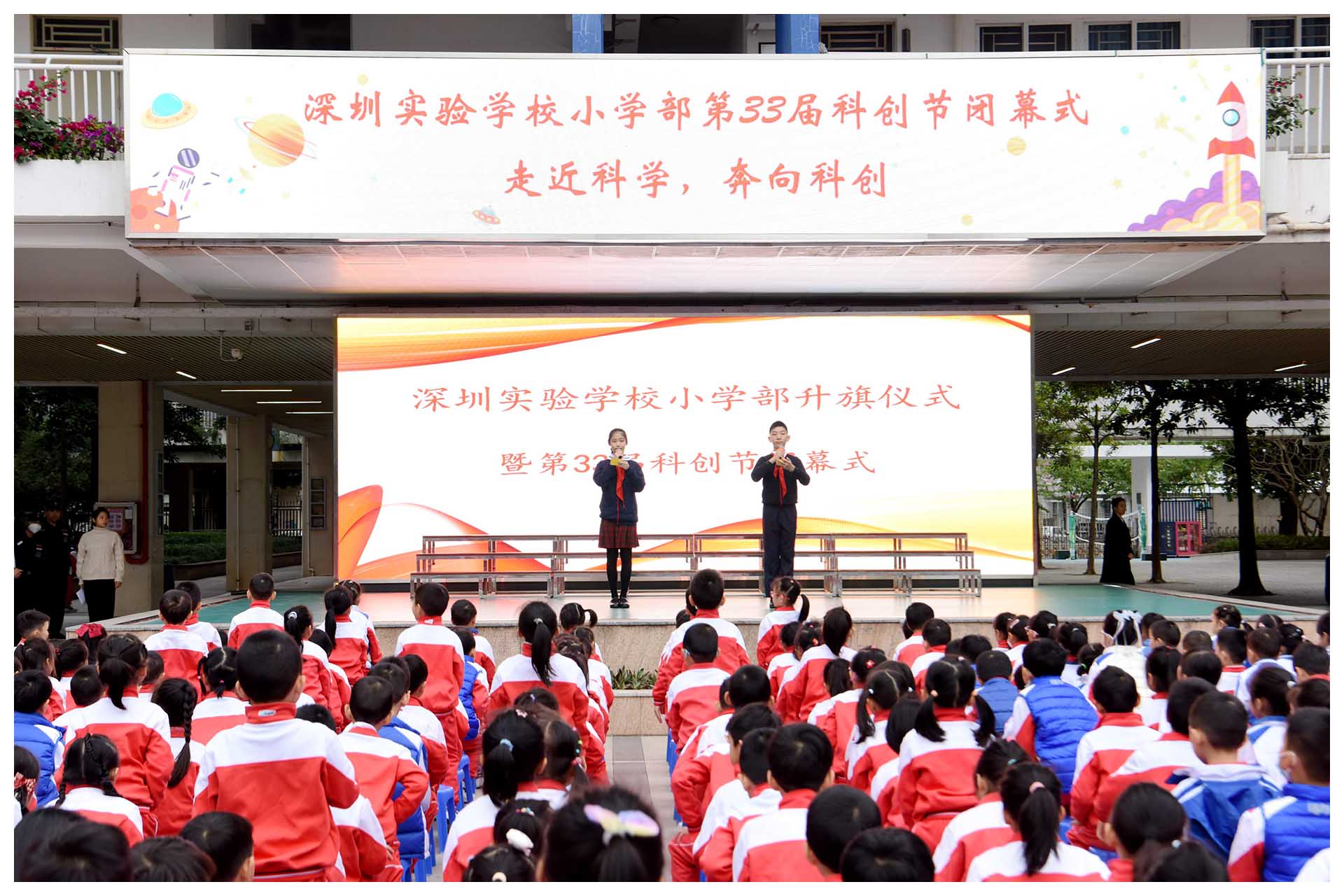 南澳的领导老师们到来这天,适逢省市教研专家莅临我校指导工作,又逢小学部科技节闭幕式,学校里到处洋溢着浓厚的科学氛围。闭幕式上,孩子们纷纷走上台前,带着自己精心制作的科创小发明,为大家带来了一场别开生面的演讲。从智能机器人到环保回收装置,从简易发电机到奇妙的光影小实验,每一个小发明都凝聚了孩子们的心血与智慧,让在场的老师们为之赞叹。