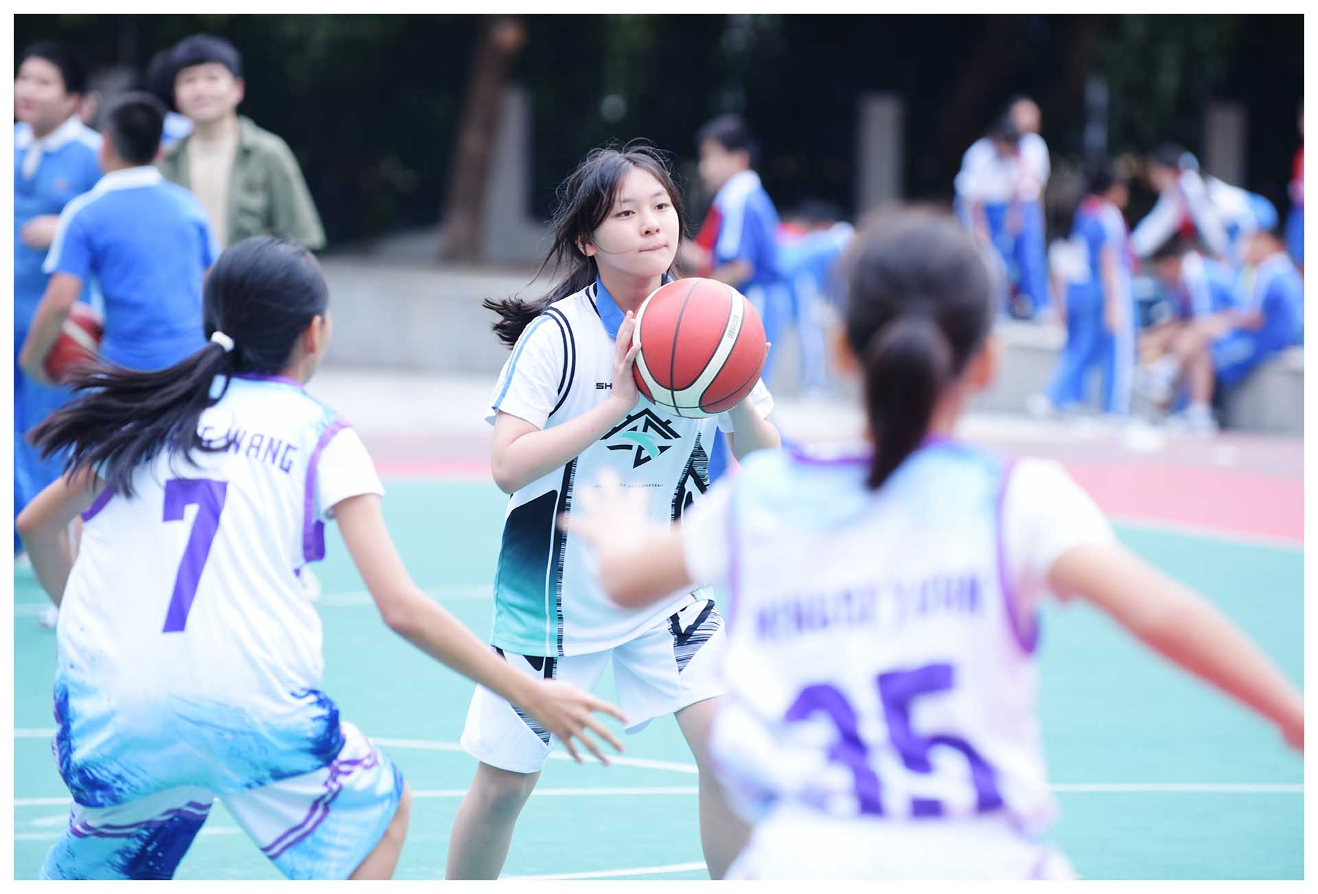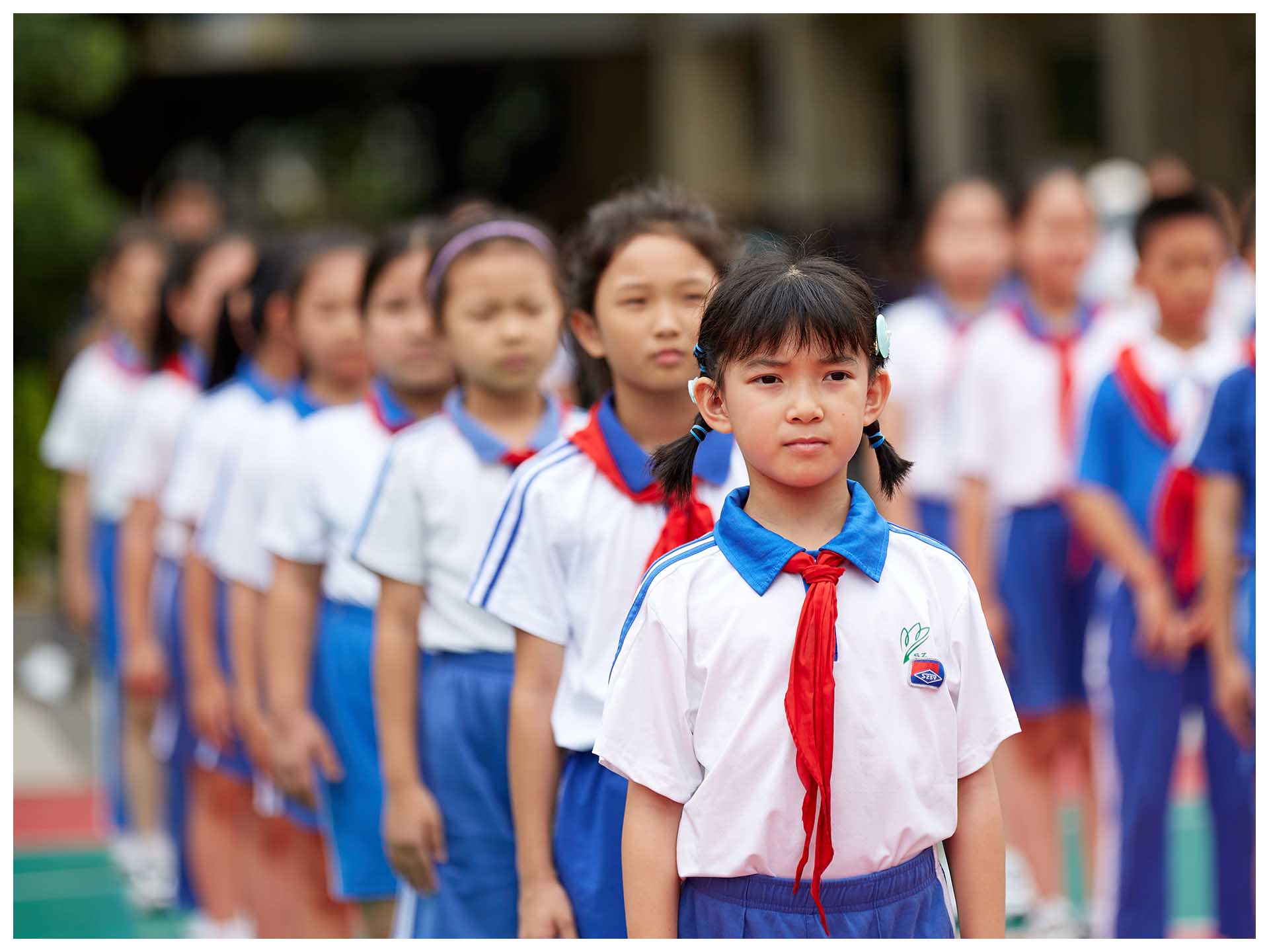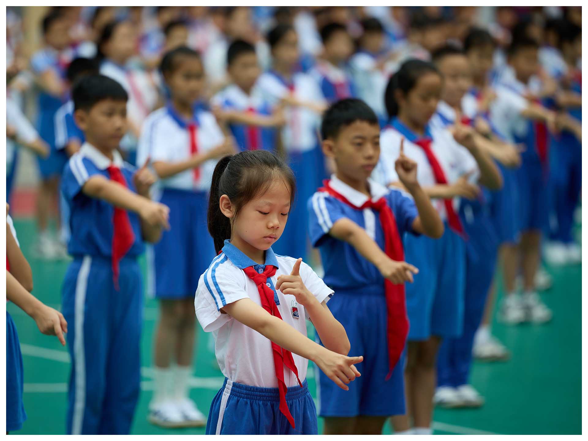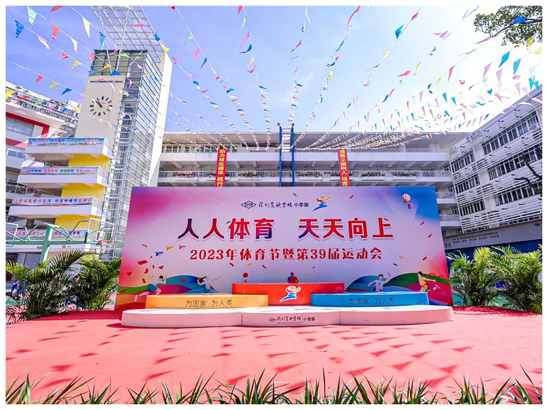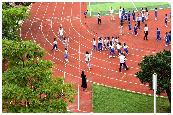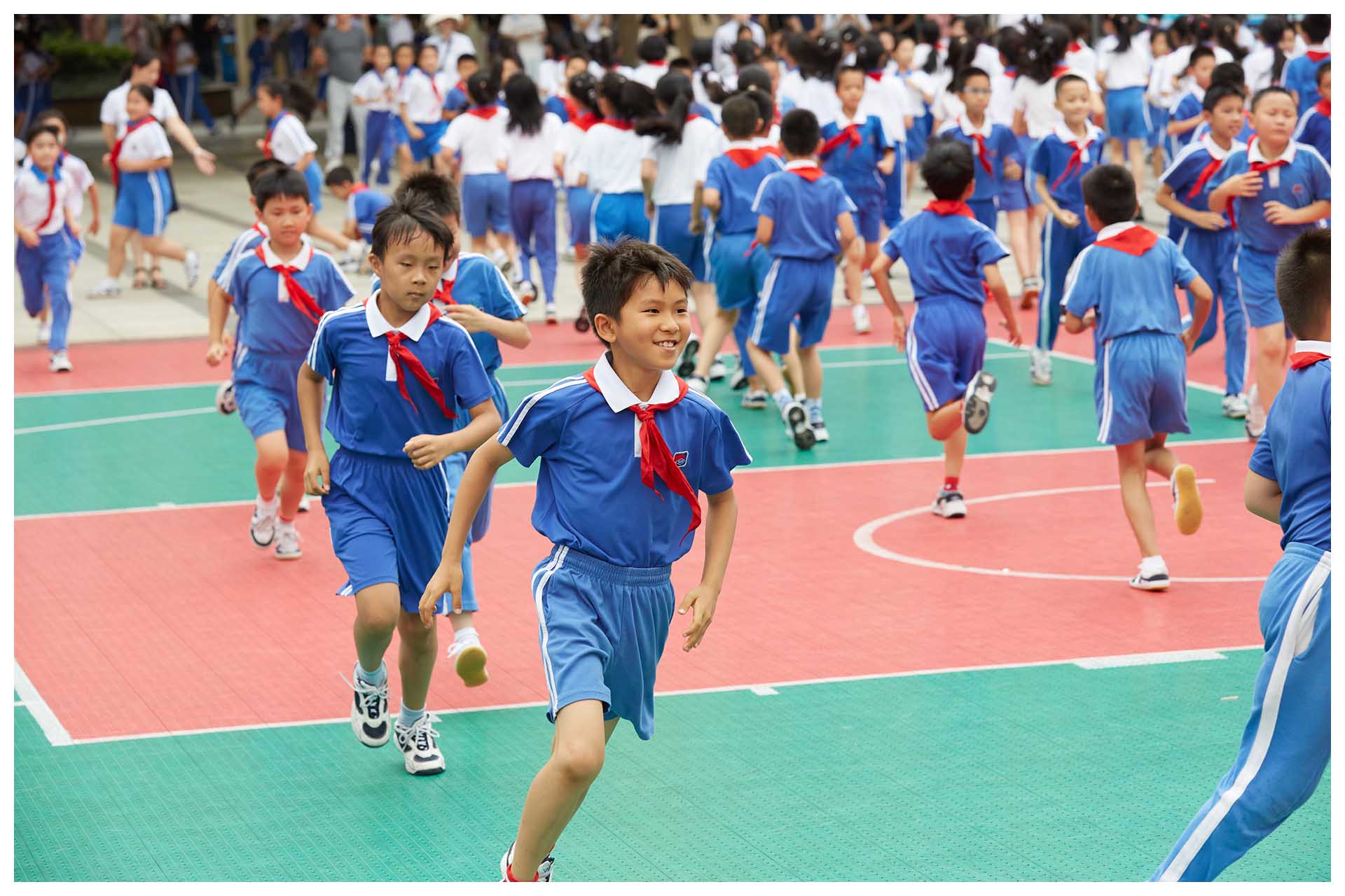 孩子们听从铃声的呼唤,家长们跟随孩子的脚步,一起转移到相应的场地,看他们的动静转换,自如切换。最为壮观的,莫过于大课间,全校学生踏着节奏,排着队伍,分别走向东西操场,开始眼球操、广播体操以及跑操的训练。当孩子们踏着哨声,稳步慢跑,各班首尾相连,步履整齐,口号洪亮,你才能真切感受到“野蛮其体魄,强健其精神”的要义。每天一节体育课,每天训练一小时,在深实验,却是日常,至今已坚持了十多年。
