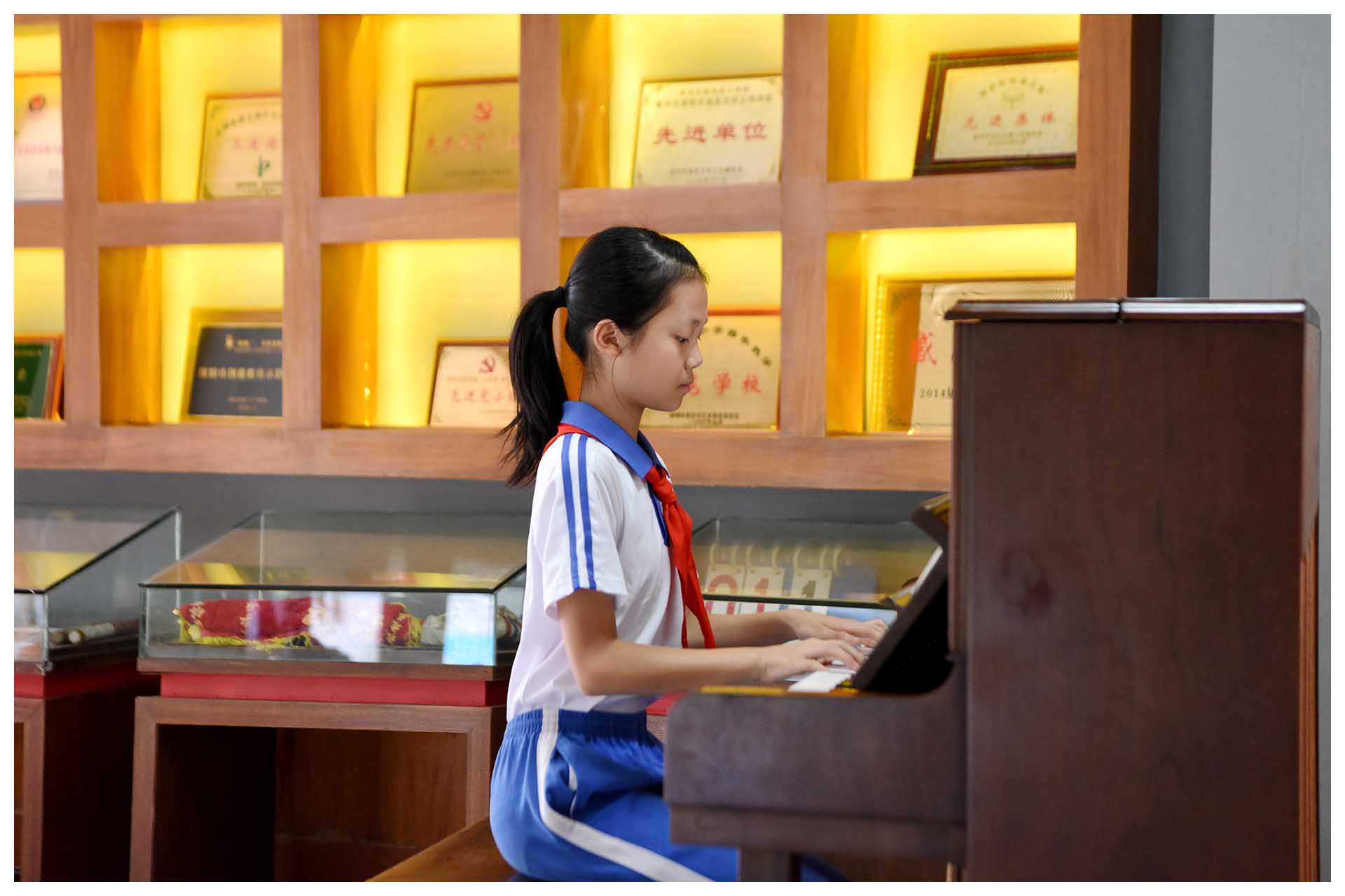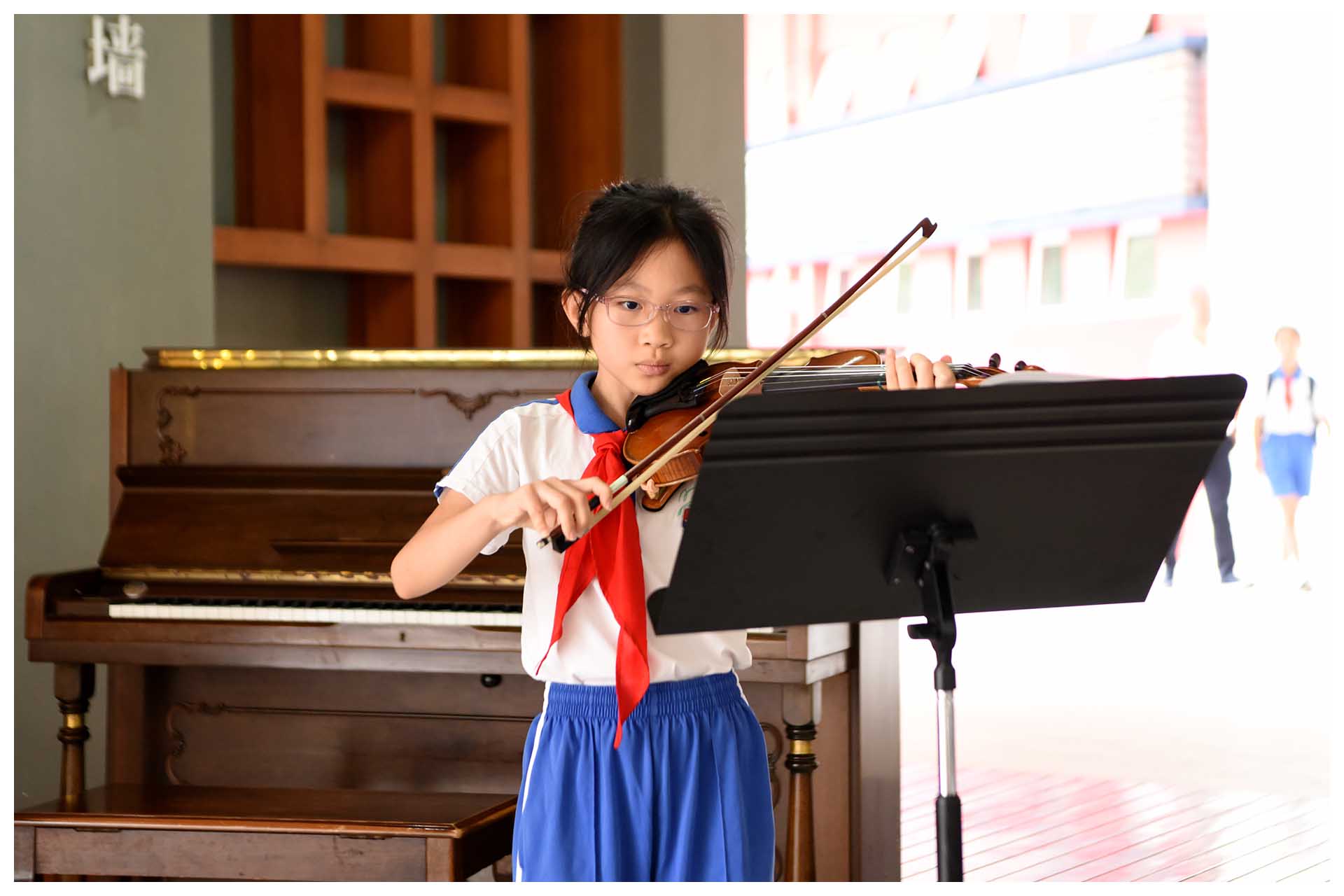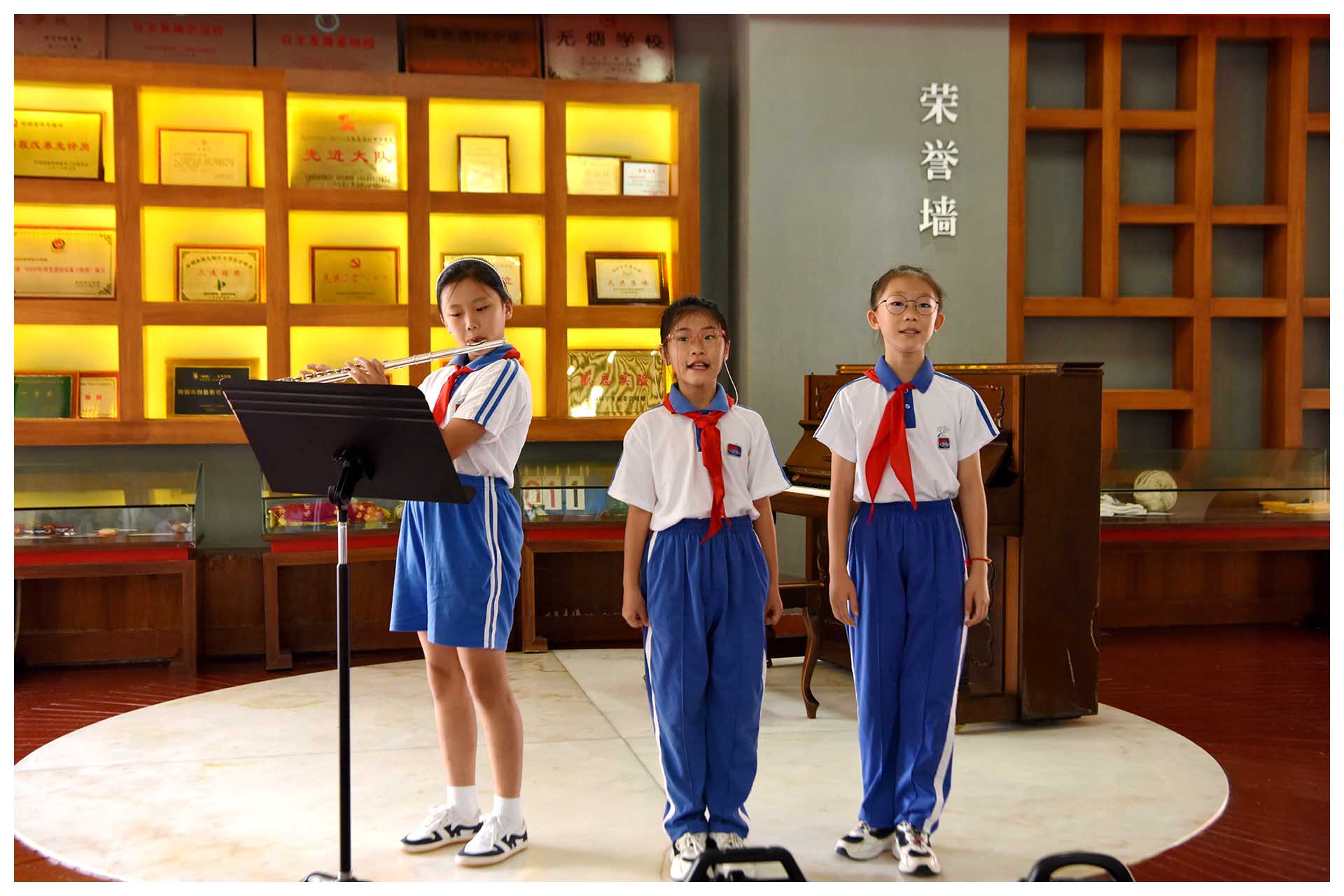 顺着体育馆红墙往前走,不久,你会听到哪里传来钢琴声声,还有歌声阵阵:“你看小狗在叫、树叶会笑、风声在呢喃,不如好好欣赏一秒,迷迷糊糊的浪漫……”那是钢琴海,是e人的俱乐部,也是才艺达人自主展示的小舞台。课前课后,只要你愿意,都可以坐在钢琴前弹支曲子唱首歌,不愁没观众,台下围观的学弟学妹乃至路过的老师都是你的粉丝。