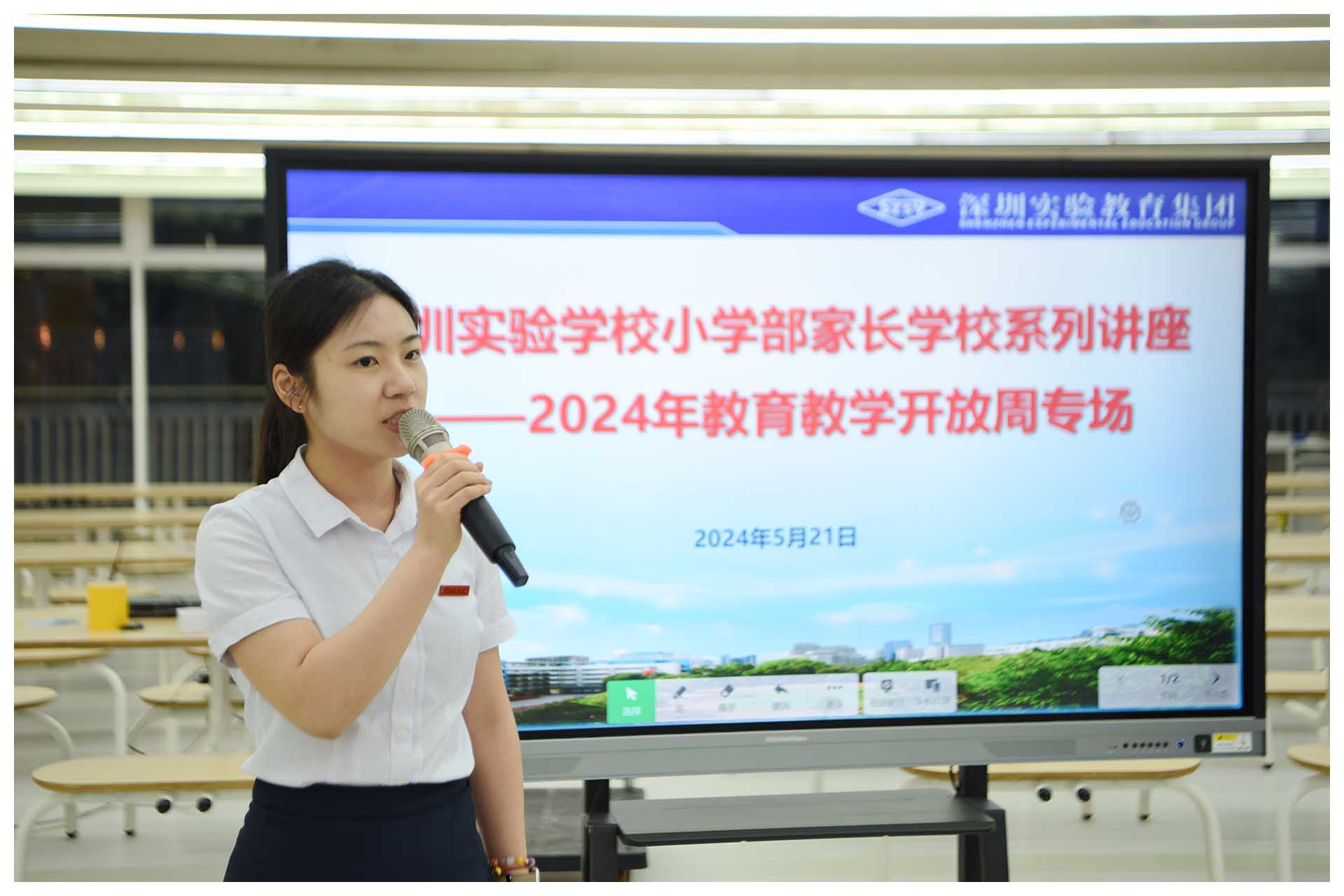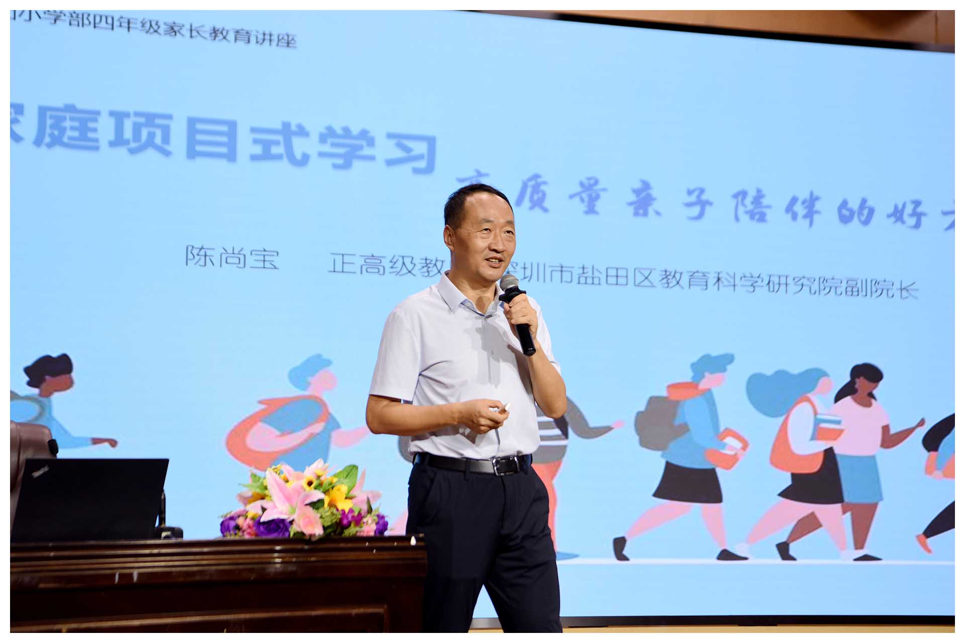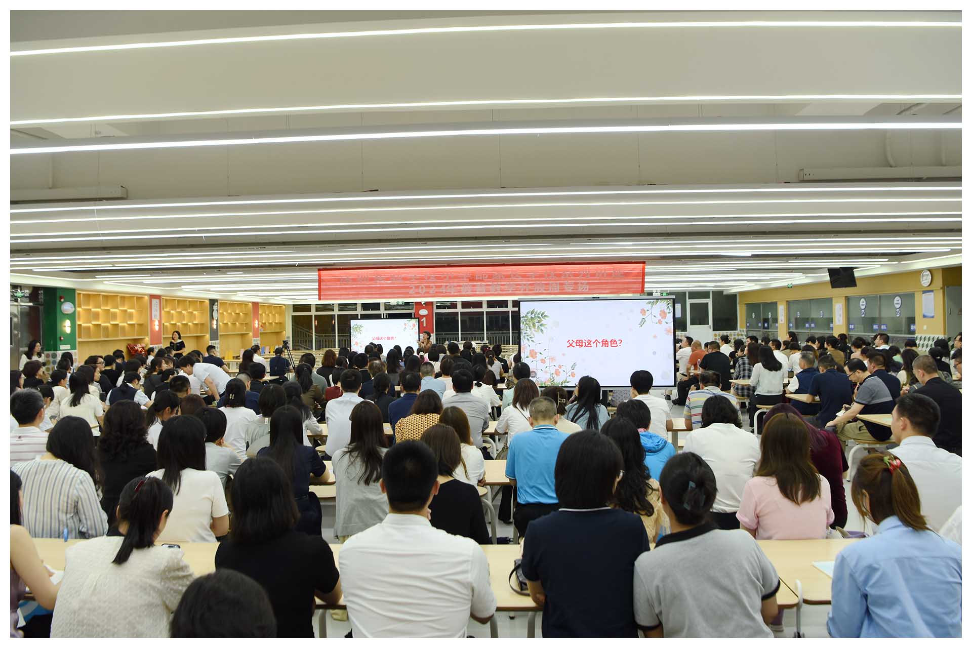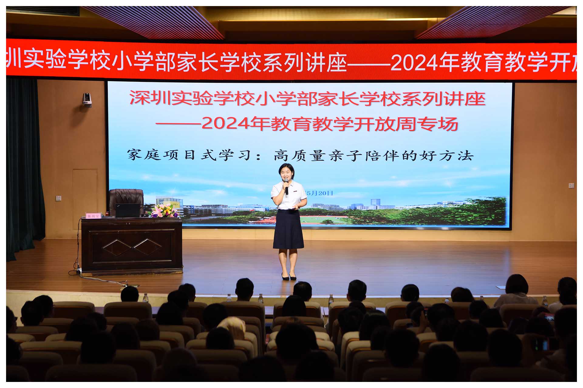 5月20日,一个特别有爱的日子,这天晚上七点,车水马龙的百花二路,一群刚下班归来或从家里直接赶来的四年级学生家长,走进绿树掩映下的深圳实验学校小学部,在新落成的报告厅内,聆听学校邀请的专家讲座。这是小学部2024年教育教学开放周的第二场活动:家长学校。在此之前,深圳实验学校副校长、小学部执行校长吴立新已经连续几天接待来访的家长,和他们促膝聊天,聊儿童的成长,聊教养的方法,聊学习的要义,聊孩子在班上和家里的那些事……