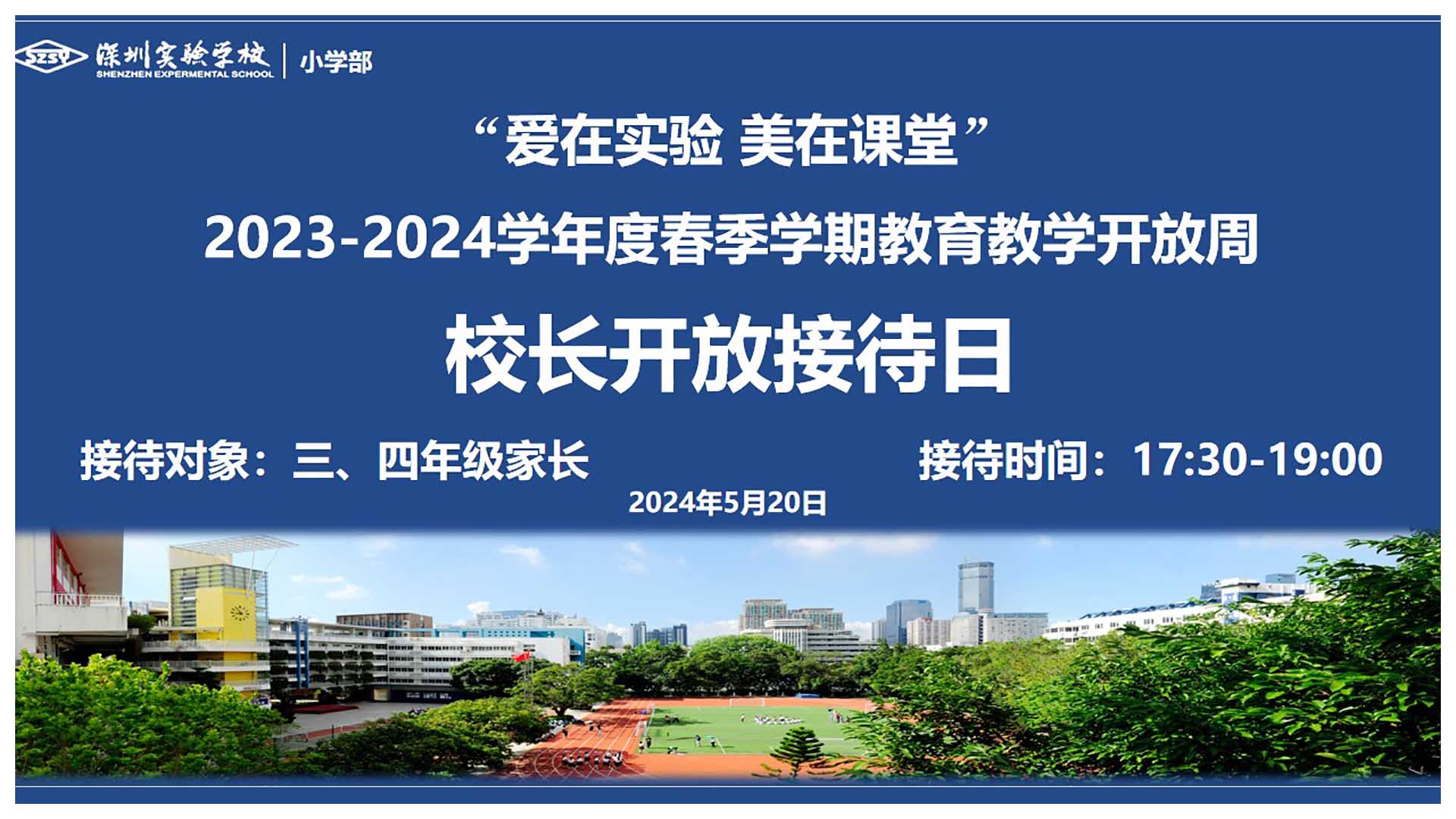 一年一度的教育教学开放周是深圳实验学校小学部的例行动作,本次开放周主题为“爱在实验,美在课堂”,全校一到六年级38个班全部学科共向家长开放152节课,在这些或激荡或感动或沉思或优美的课堂上,你能看见每一个真实的孩子、每一次真实的生长;也能看见爱与美的教育如何落地生根,看见学习如何真实地发生。这是一次家庭对学校的亲切拜访,也是一场象征实验品质的教育教学的饕餮盛宴。让我们跟随家长手机、相机里留下的影像画面,走进小学部青青校园、暖暖课堂……