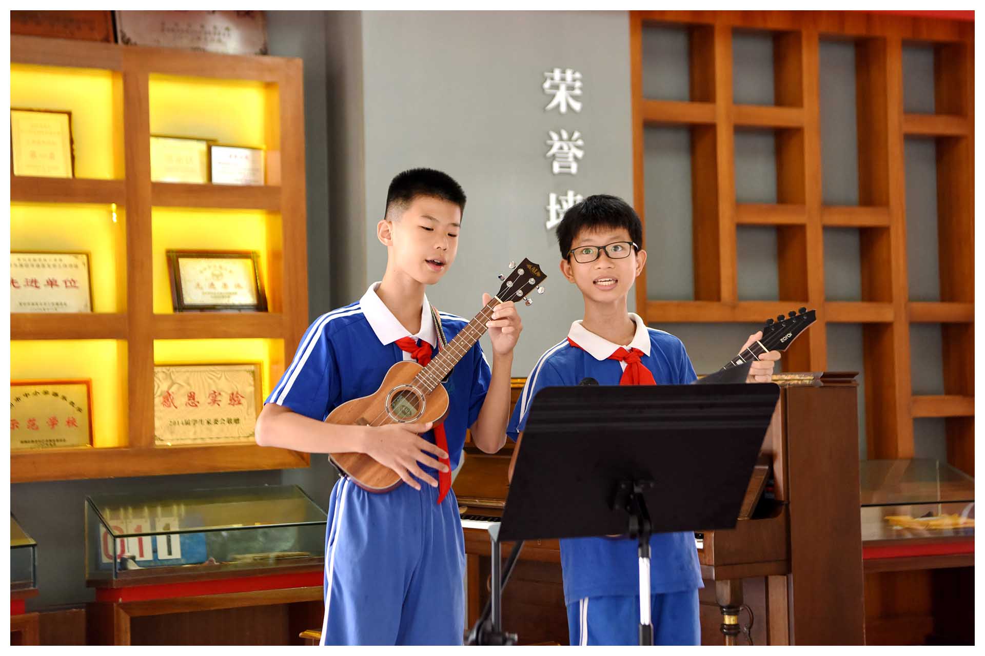 有人说,在一群学生里,一眼就能看出,哪些是深圳实验学校的学子。你要问为什么?其实原因很简单,实验的孩子,有自己独特的气质。除了家庭对孩子耳濡目染的文化熏陶,更有学校对孩子健全人格的看重培养。在实验,孩子才是真正的主人。走进校门,你看——黄墙边,亭亭立着好几位同学,看到你走近,他们会热情地为你介绍黄墙上他的作品:指尖上的民艺、音乐家的故事、巧手剪纸……如果不是亲眼所见,你都不敢相信,这些精美的作品,会出自这些可爱的孩童之手!
