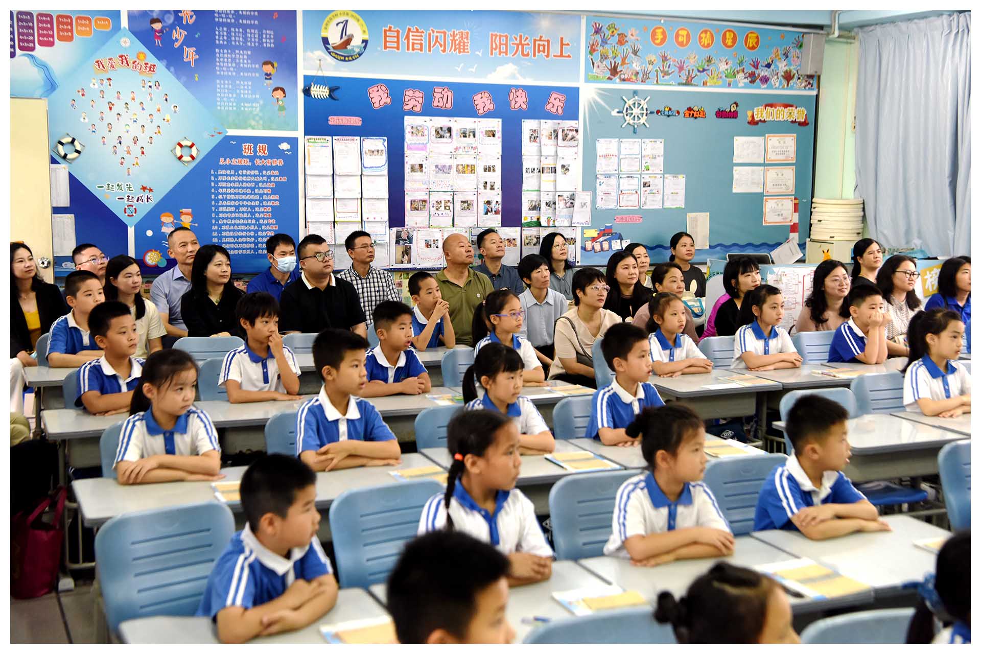 教育教学开放周,意味着一周内学校会对家长进行全方位开放,这既是一次对学校教育的全面检阅,也是一场教师高超教艺与才华的全面展示。制作精美的课件,热情互动的课堂,激情洋溢的朗读,沉潜深思的数理,静心描绘的美术,欢快愉悦的律动,秩序井然的奔跑……一切自有章法,一切张弛有度。这里是成长的摇篮,所有教职员工全力全情的付出,正是为了这一间间教室里坐着的每个小孩的全面发展,就连教室墙上不定期更换的小报,以及这里那里悬挂着张贴着的孩子们的书法美术作品,都在表达着相同的主题:基于儿童立场的教育——一切为了孩子,为了一切孩子,为了孩子的一切。