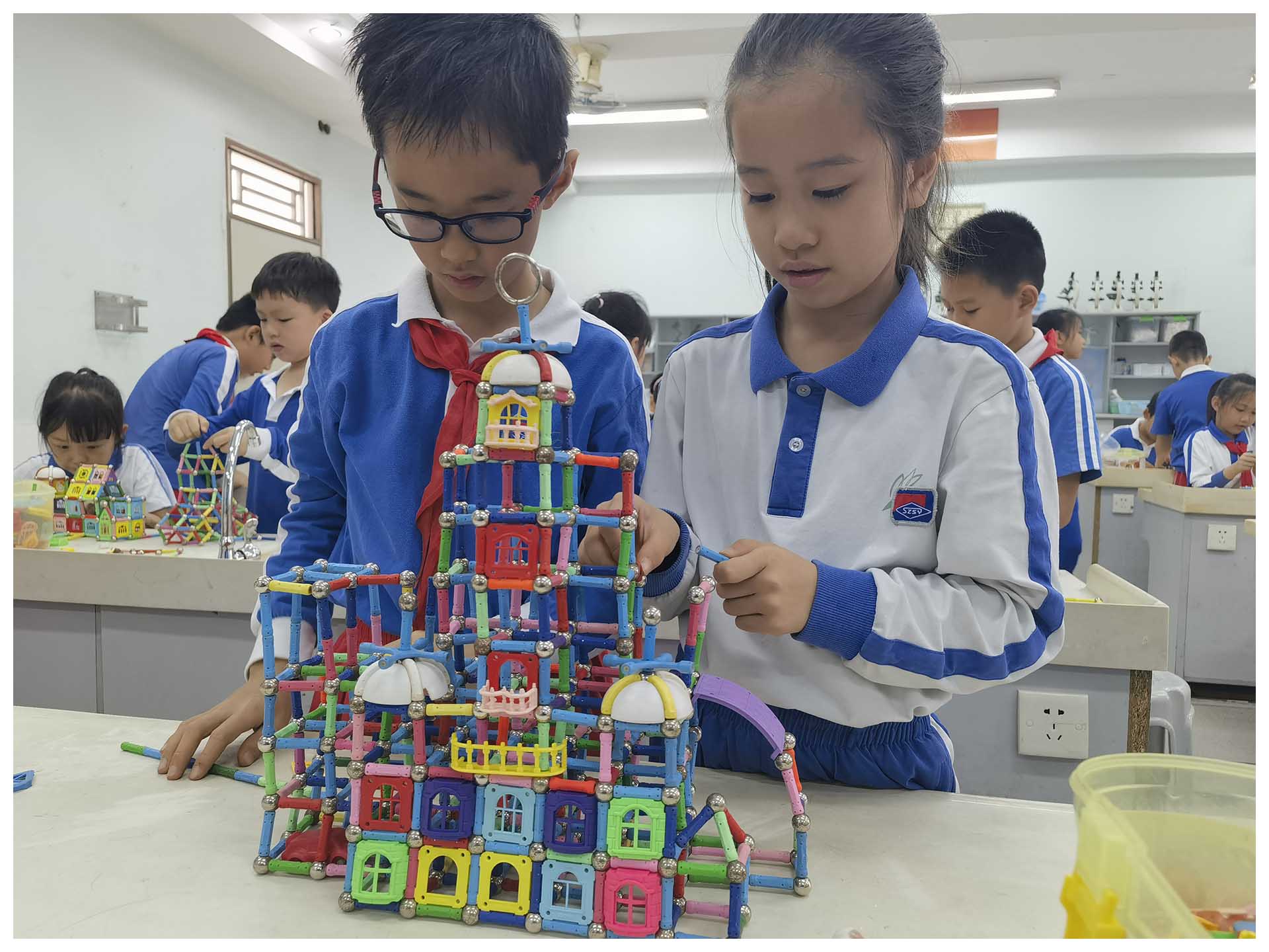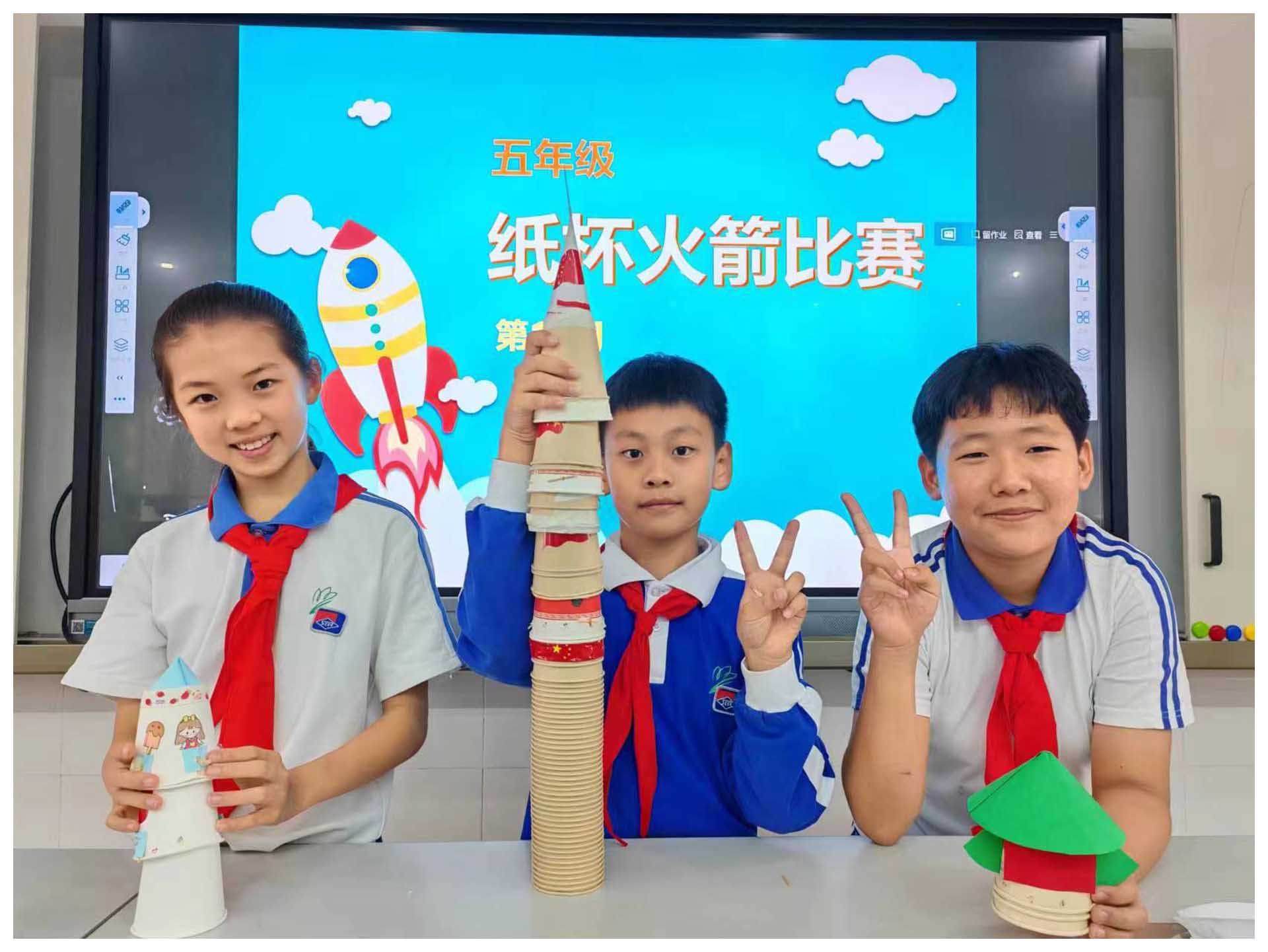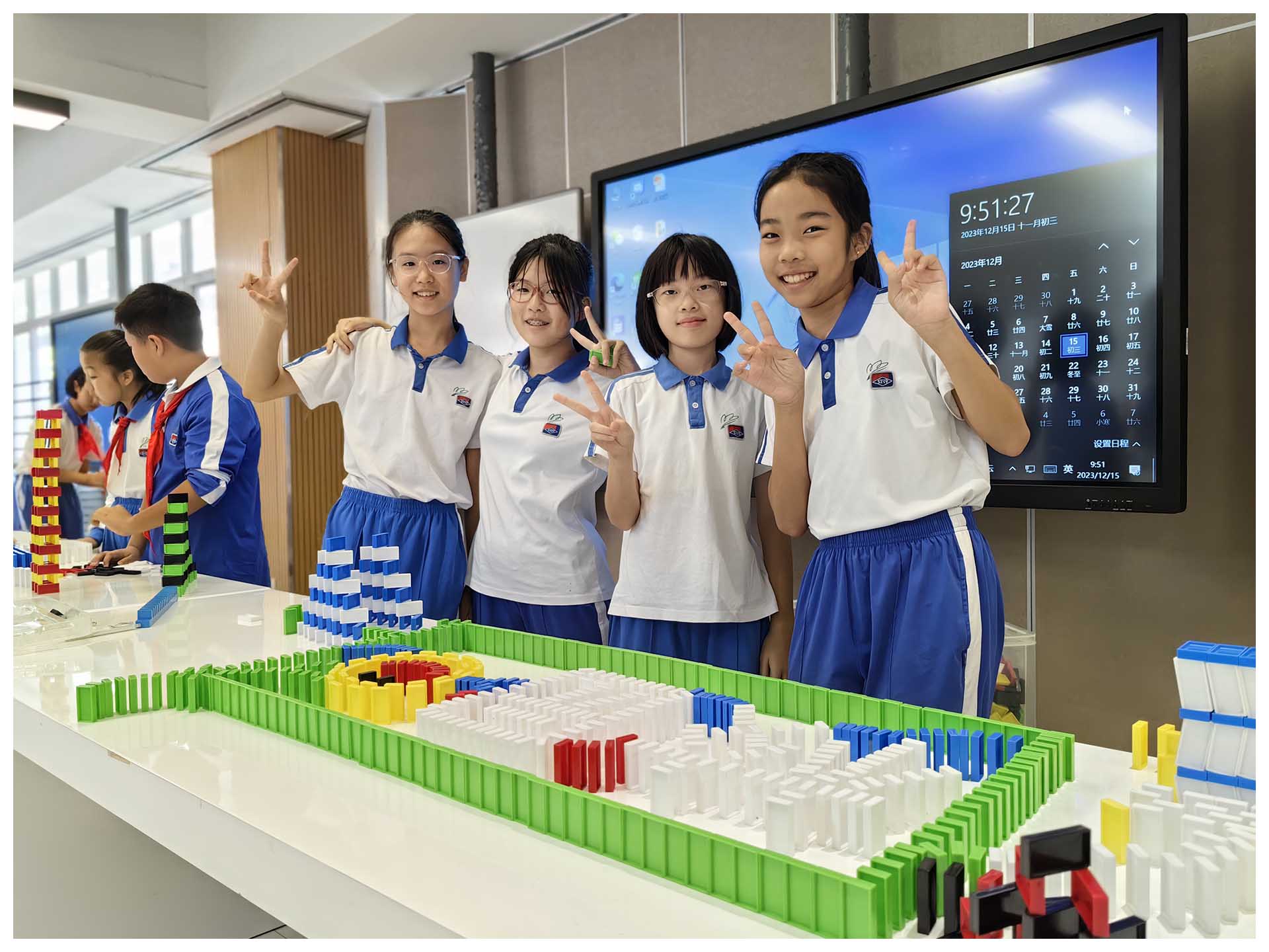 一年级 “创意搭建”活动,学生搭建了创意楼梯,还制作了可以持久旋转的创意积木陀螺;二年级“纸桥承重”活动,学生做的纸桥力气可大了;三年级“磁力棒造房子”活动,学生充分发挥想象力,设计制作了精美的“磁力棒房子”;四年级“鞋盒里的博物馆”活动,小小的鞋盒变成一个个精致又有趣的“博物馆”,既有科技感满满的核能博物馆,也有吃货天堂广东粤菜博物馆,应有尽有;五年级“纸杯火箭赛”活动,学生动手动脑,应用科学原理制作出飞得更高更远的“火箭”,同学们还创做出多级火箭、撒花火箭、八爪鱼火箭等等新型火箭;六年级“多米诺骨牌”活动,考验学生的专注力、耐力和创造力,各种好玩又精美的多米诺骨牌设计让人眼前一亮。年级特色活动,全员参与,每个学生都发挥想象力和创造力,沉浸在设计与制作的乐趣之中。