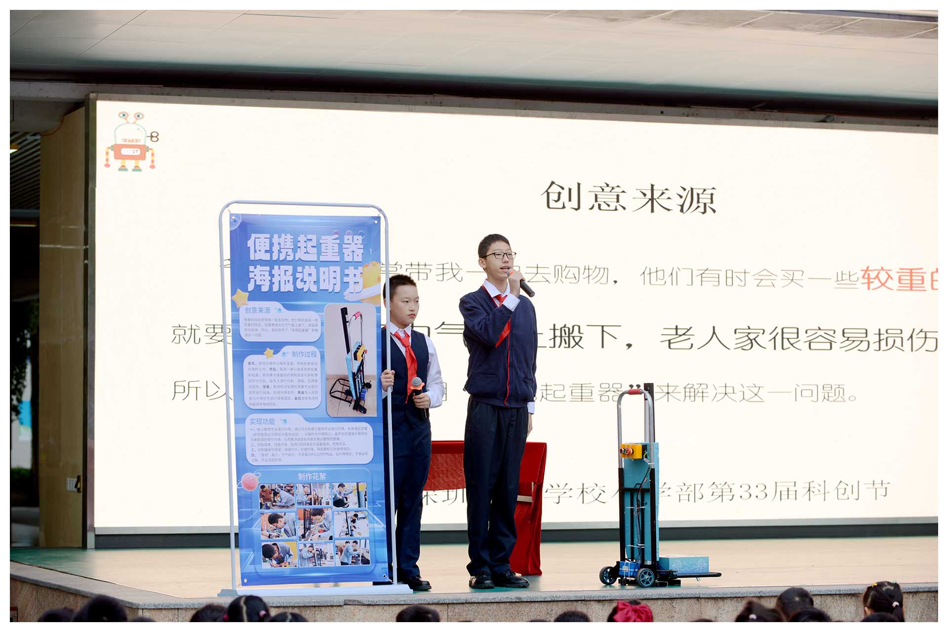 12月19日,深圳实验小学部举行了第33届科创节闭幕式。闭幕式上,首先进行了年级活动、创新活动、科创之星和科创班级的颁奖,同学们在本次科创节中不仅留下了珍贵回忆,也收获了累累硕果。接着,科创之星作为同学们的同辈榜样,为同学们介绍了自己的科创历程和创意作品,大家听得津津有味,收获满满。最后,还有神奇的液氮秀,给同学们带一波又一波的惊喜,惊叹声此起彼伏。科普实验秀让大家深深体会到科学的魅力;而一个又一个将创想实现的创意作品让大家感受到科技的力量。