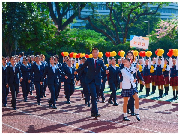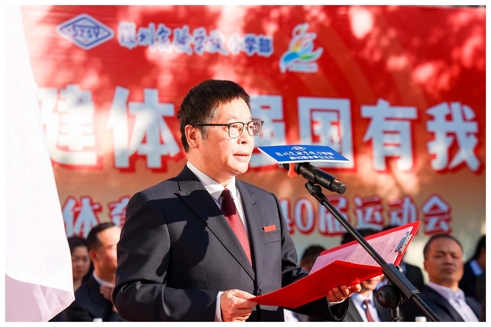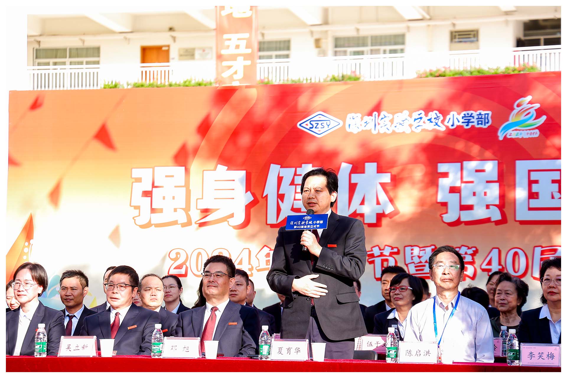 紧接着,吴立新校长提到了深圳实验学校即将迎来的40周年校庆。他介绍了学校始终坚持的健全人格教育理念,特别是体育在其中的重要地位。学校不仅落实好每天一节体育课、每天运动一小时的要求,还持续开展各年级专项体育比赛活动,举办体育节运动会,让体育精神融入到每一位实验学子的血脉中。在过去的比赛中,学校选手夺得了许多优异的成绩,充分显示了新时期实验师生的体育素养和实验学校的强大力量。