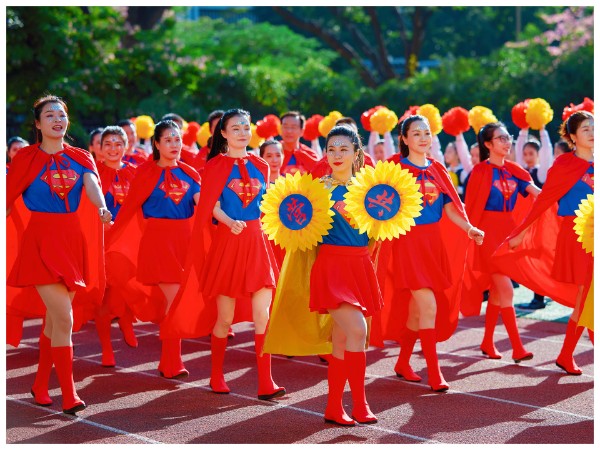 同学们精彩的表演和老师们饱满的热情赢得了现场观众的阵阵掌声和欢呼声,充分展示了实验师生的活力与风采。家长方阵队的“超人爸妈”展示火爆网络,班主任带学生走方阵队元气满满,精气神十足,被深圳教育官方视频号迅速关注并发布,反响热烈。
