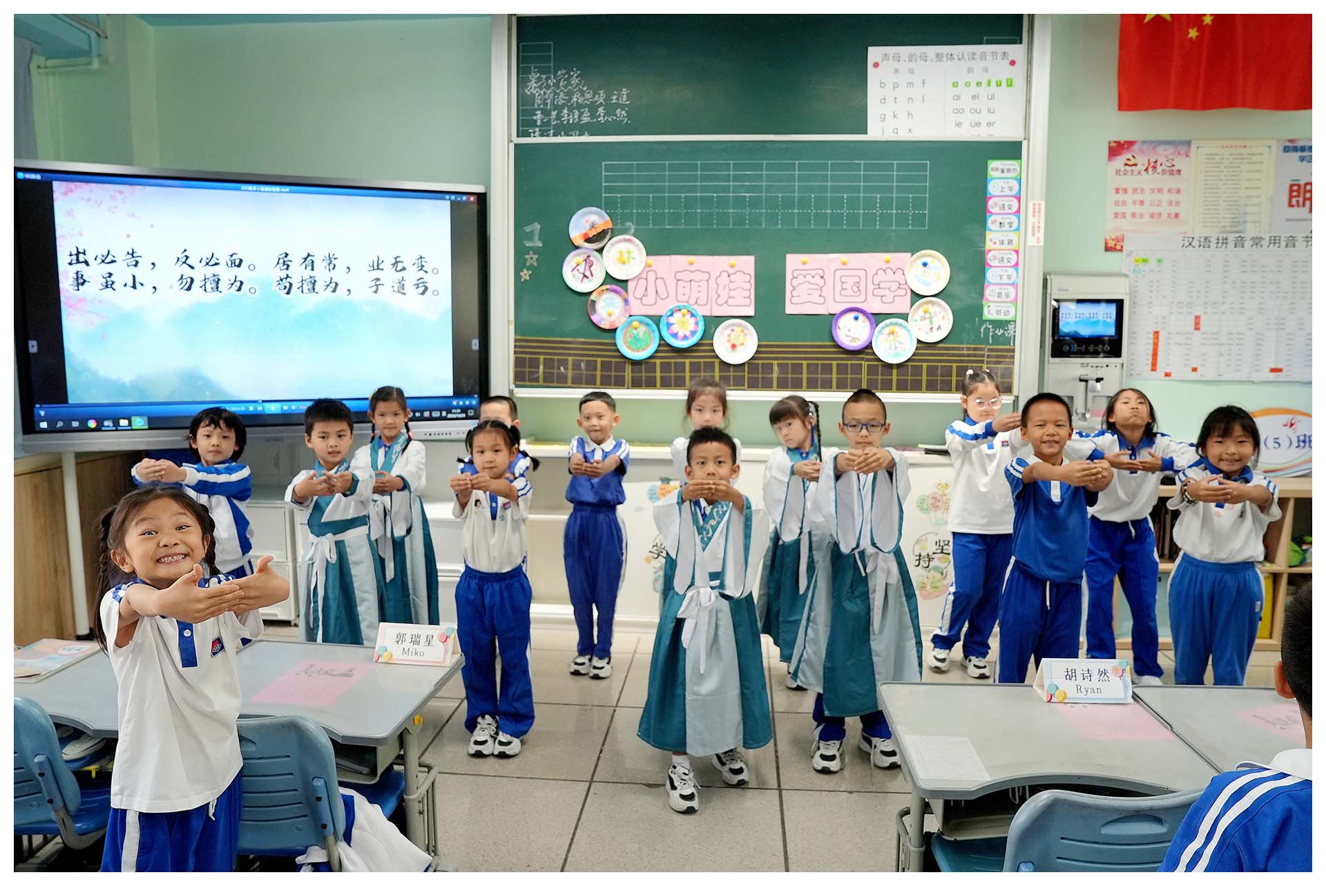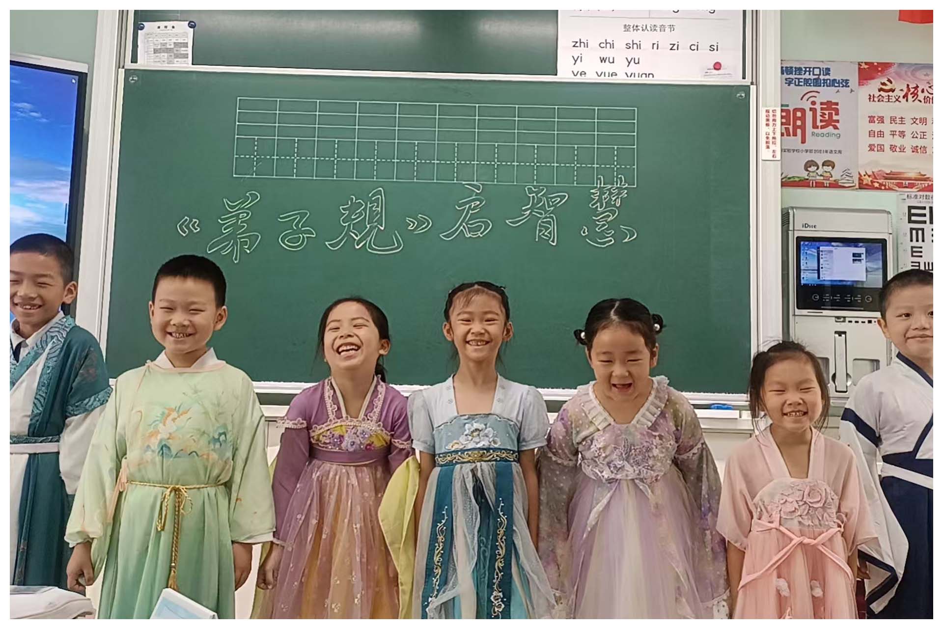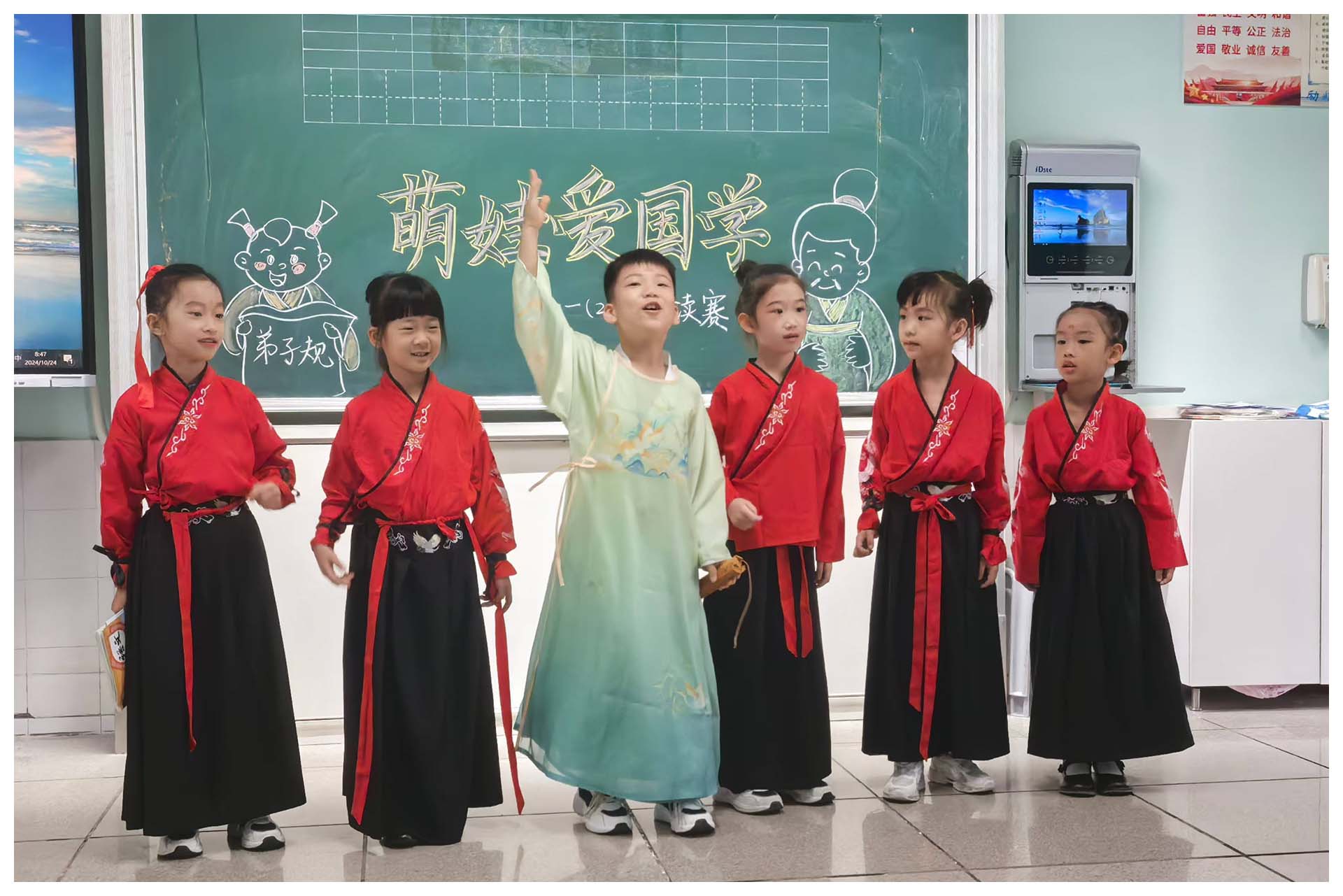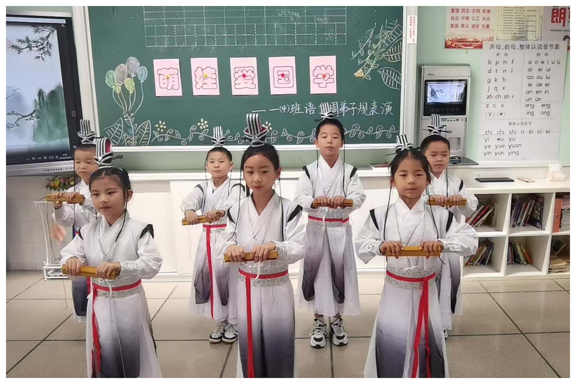一年级的小萌娃们精神抖擞,用清脆的童声诵读《弟子规》。他们通过生动的诵读和欢快的歌曲,将其中蕴含的为人处世的道理娓娓道来。那悠扬的歌声春风化雨,滋润着每一个人的心间,让我们深深沉醉于传统文化的魅力之中。
