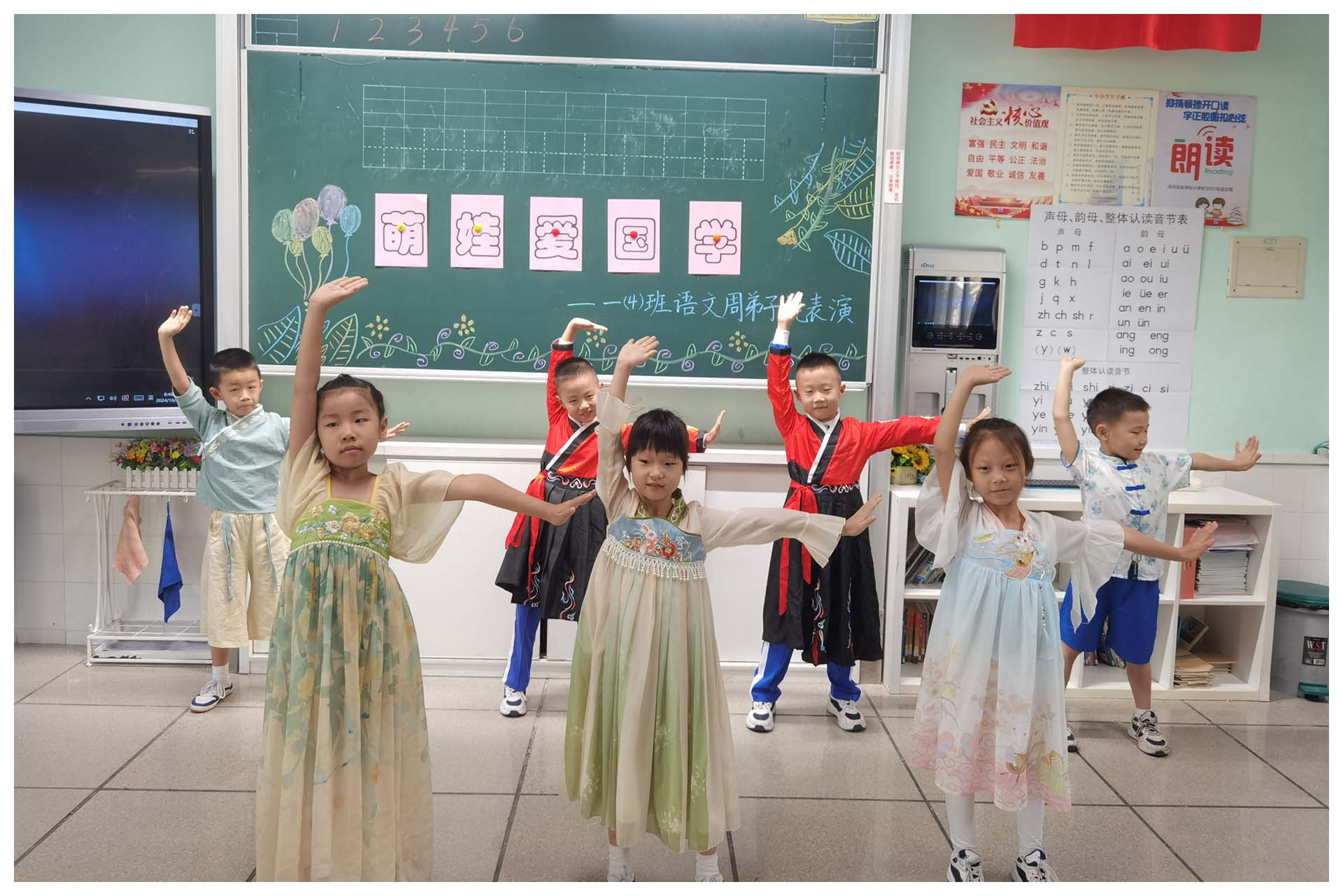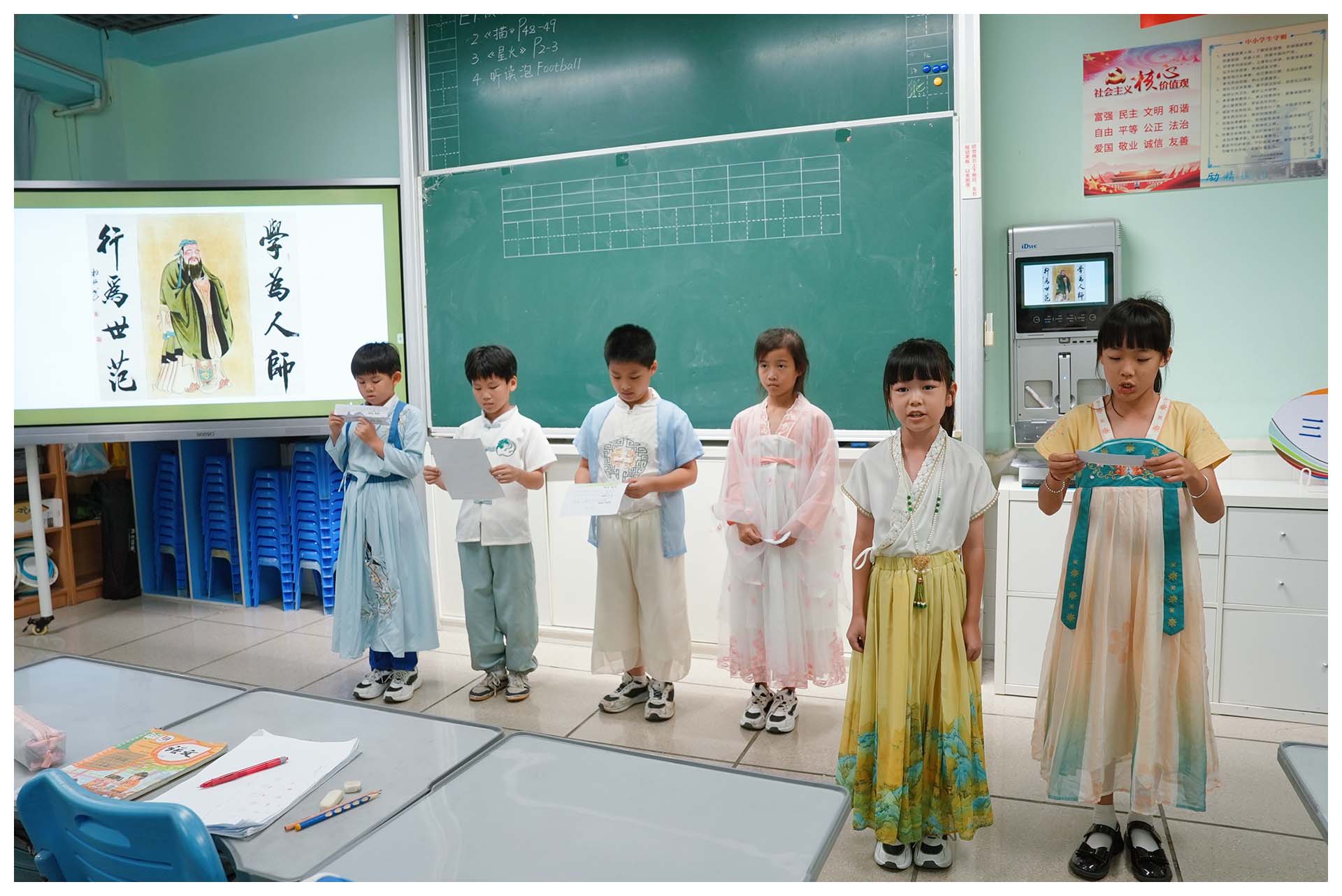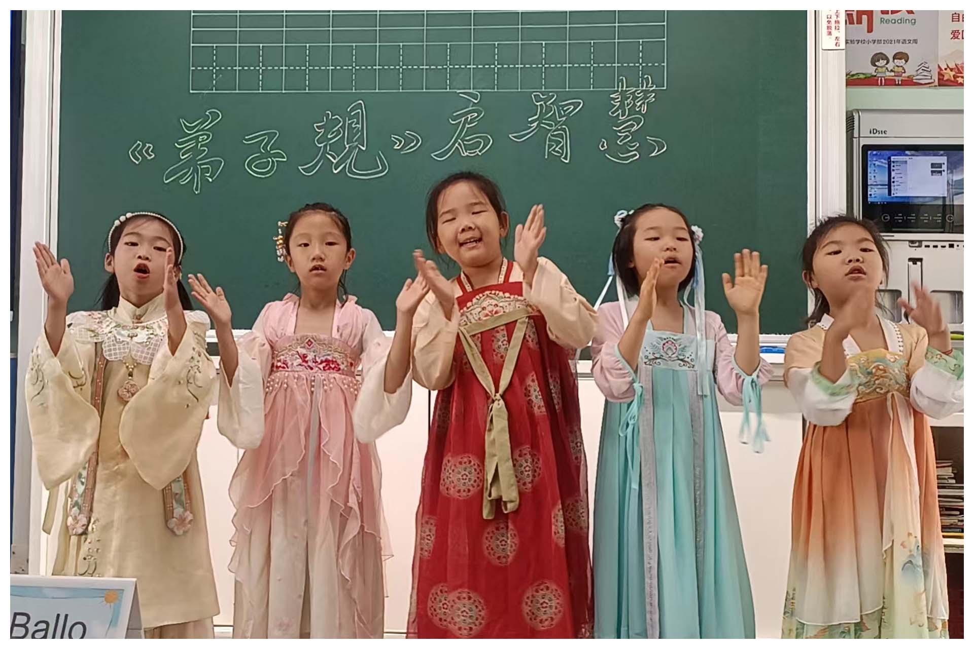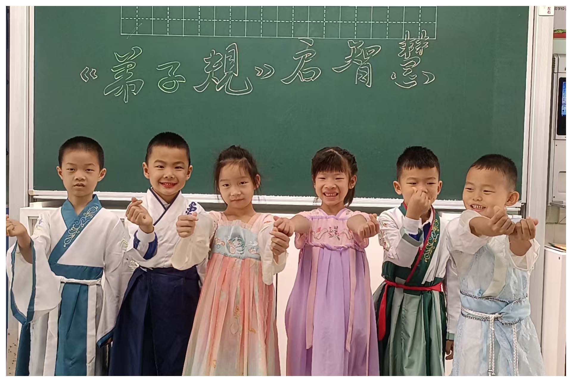 一年级的小萌娃们精神抖擞,用清脆的童声诵读《弟子规》。他们通过生动的诵读和欢快的歌曲,将其中蕴含的为人处世的道理娓娓道来。那悠扬的歌声春风化雨,滋润着每一个人的心间,让我们深深沉醉于传统文化的魅力之中。